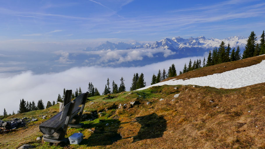 Einfach zum Genießen: Das königliche Aussichtsbankerl auf 1750 Metern.