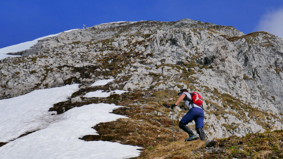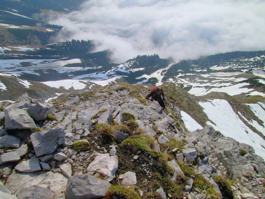 Der letzte Aufschwung wartet auf Jürgen - wie er es nennt, "kratzt das Gelände am I. Kletter-Schwierigkeitsgrad". Wir