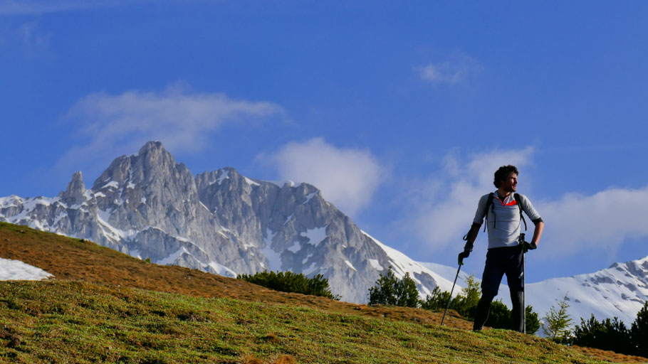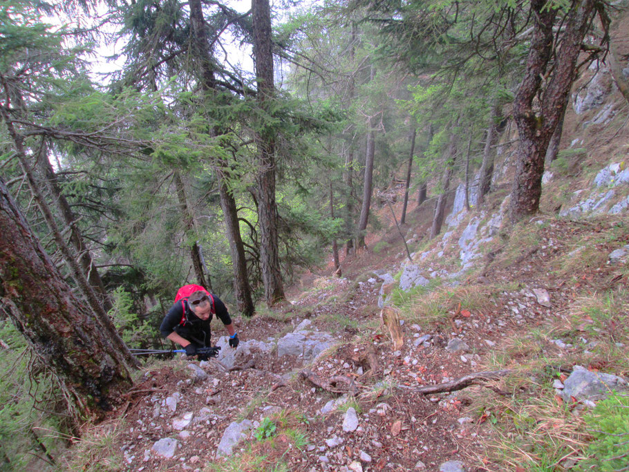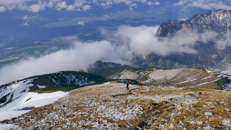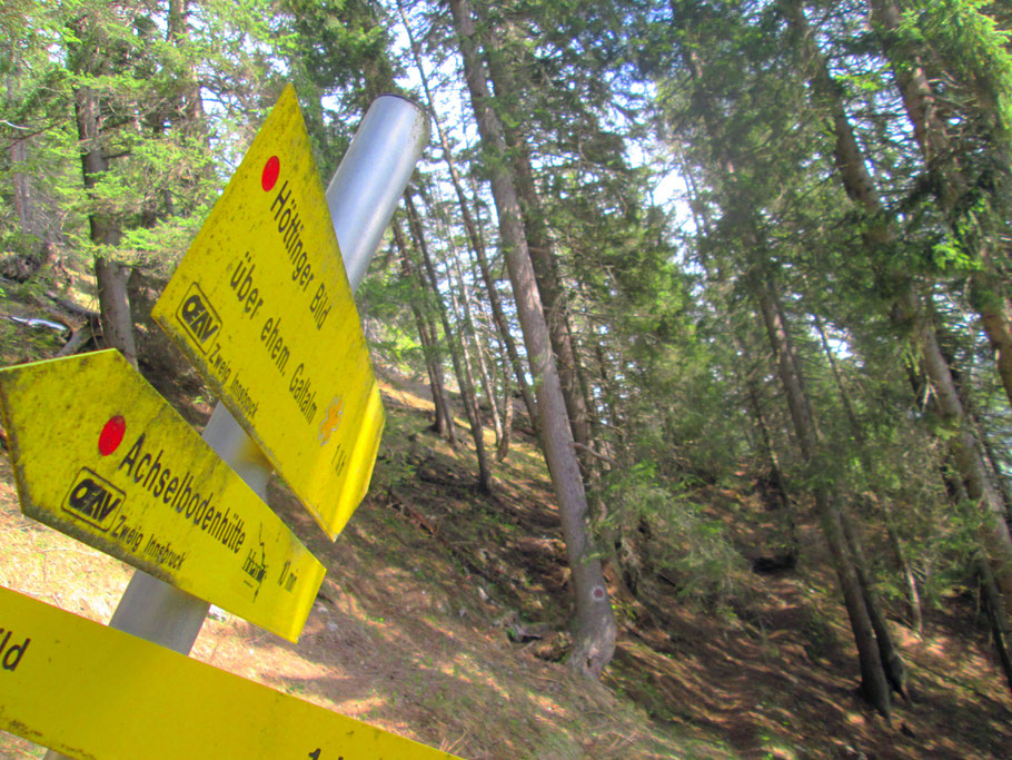 Im Abstieg wählen wir den wenigen schwierigen Weg über die ehemalige Galtalm zum Höttinger Bild. Nähere Infos gibt es