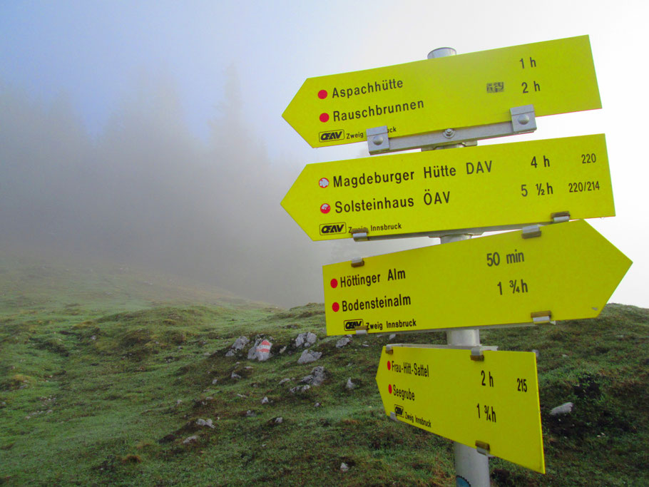 Das Brandjochkreuz ist nirgendwo angeschrieben - es geht vorerst Richtung Frau Hitt.