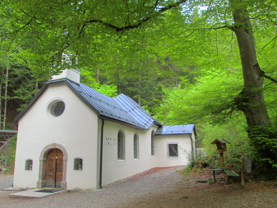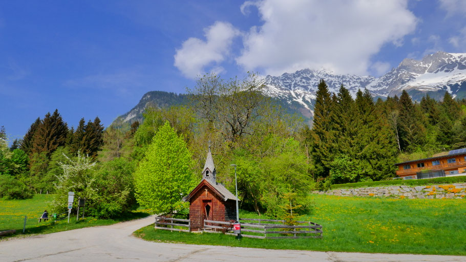 Die kleine Kapelle Höttinger Bild (905 Meter) - dahinter halten wir uns auf dem Weg zur