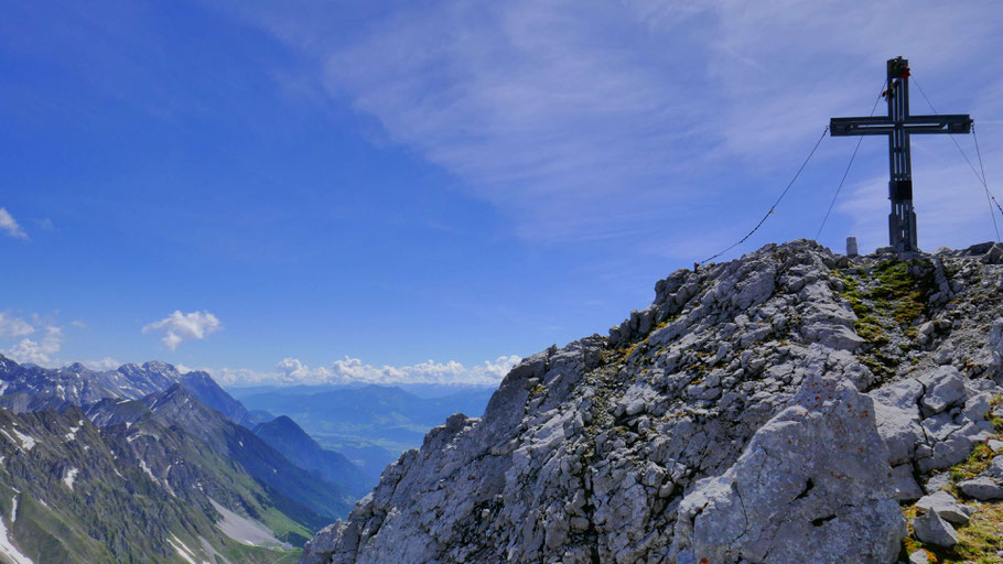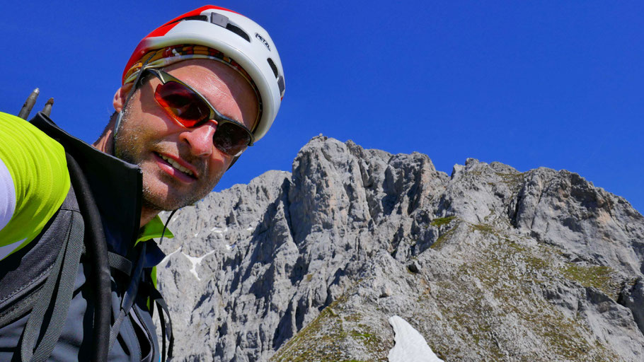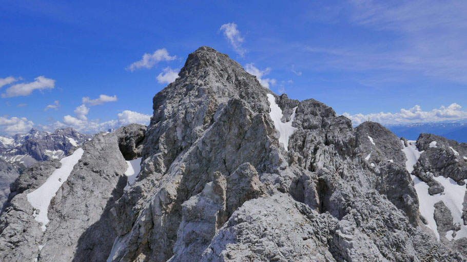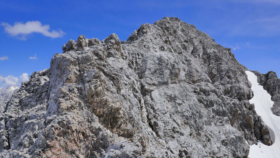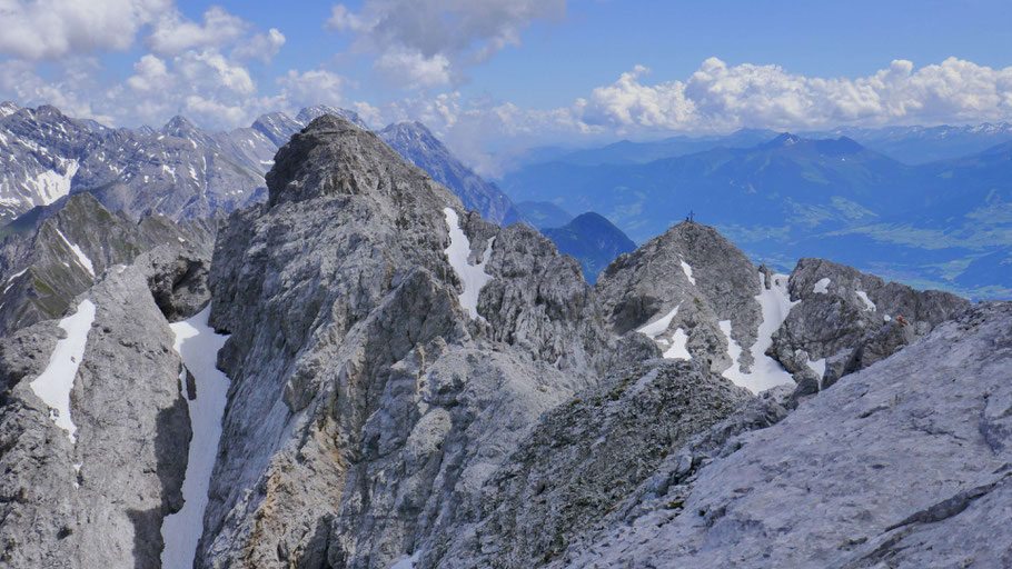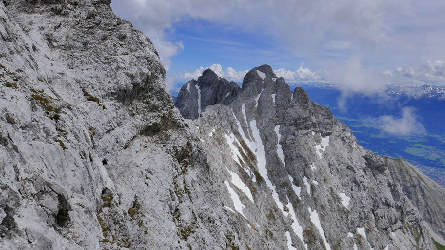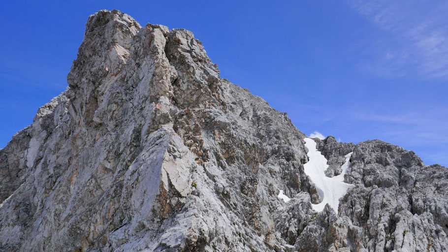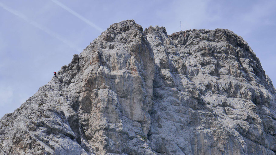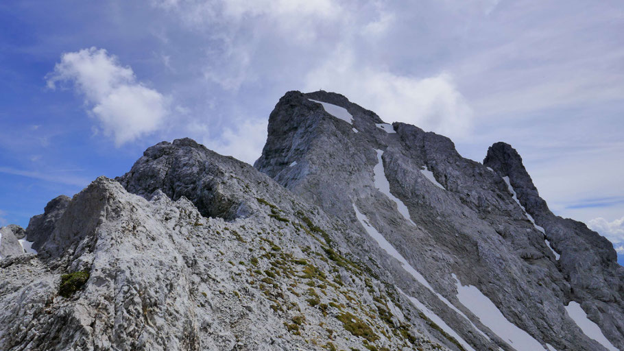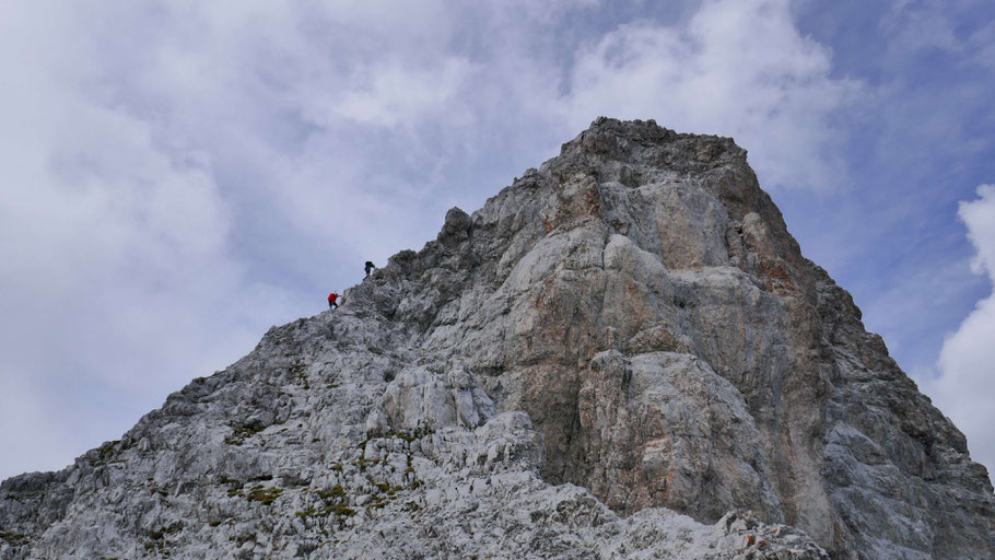 Die letzten Meter am nunmehr flachen Grat mit ein paar luftigen Kraxlereien und dann endlich am Gipfel des Kleinen Solstein (2.637m).