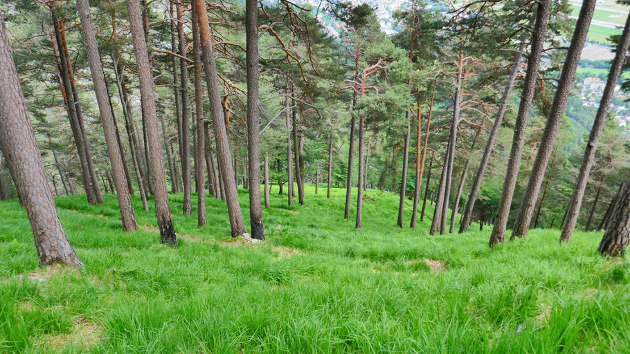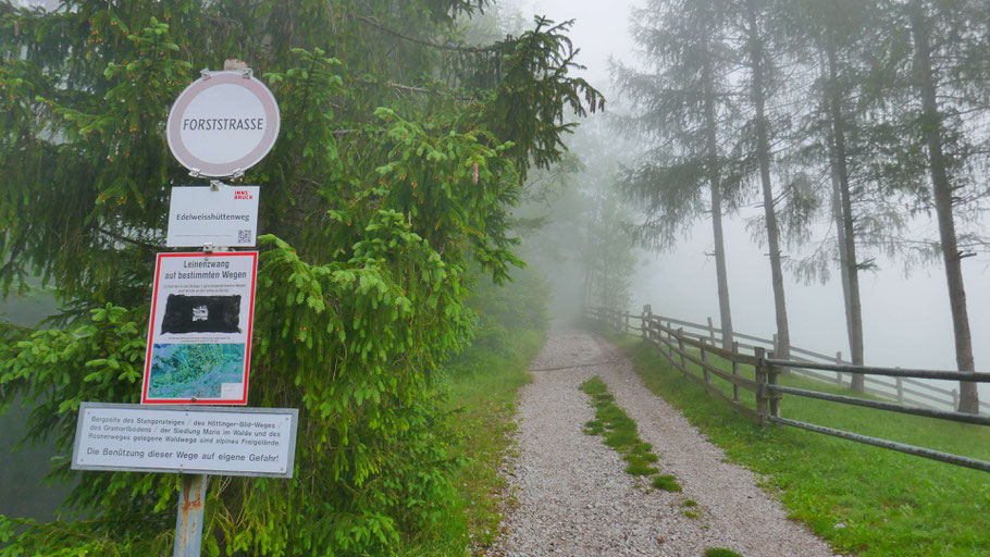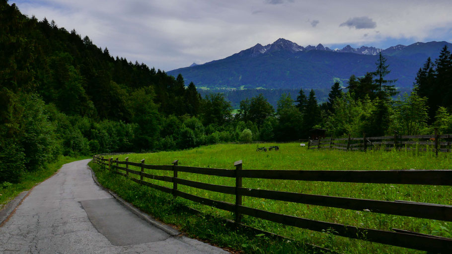 Startpunkt der langen Rundtour ist in Kranebitten nahe des Bahnhofs (680m). Einige Minuten auf der asphaltierten Klammstraße hinauf zum Kerschbuchhof, kurz danach geht der Forstweg in einen schönen Steig über.