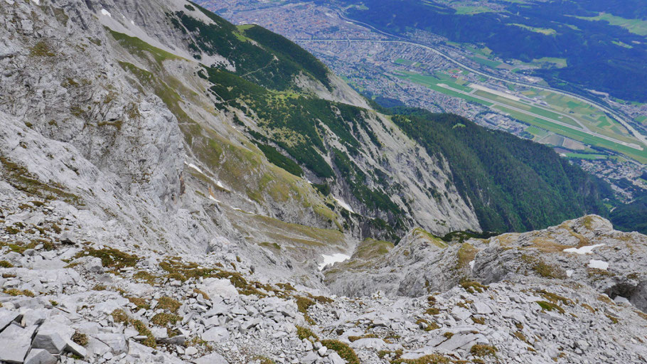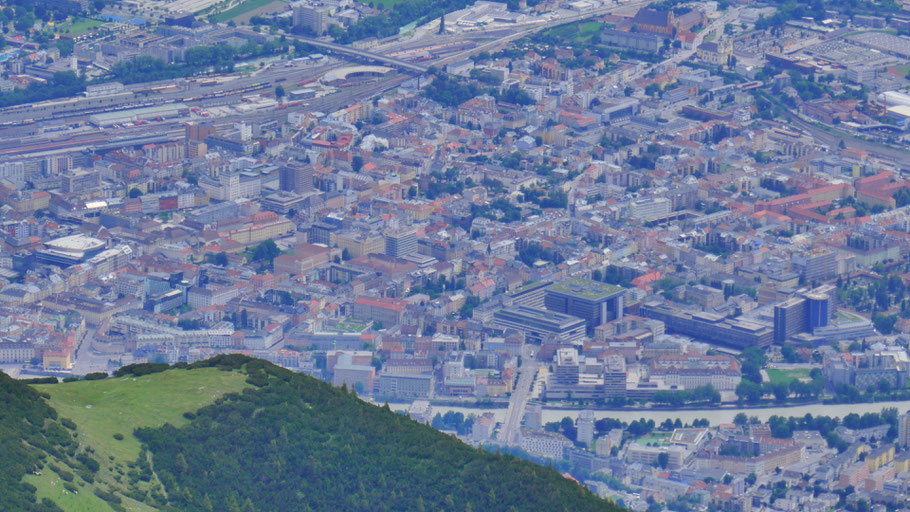 Immer wieder der faszinierende Tiefblick auf Innsbruck.