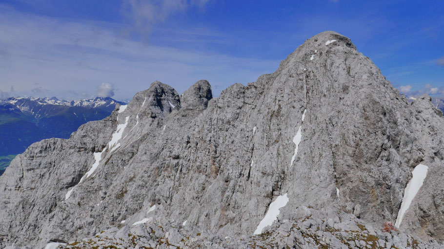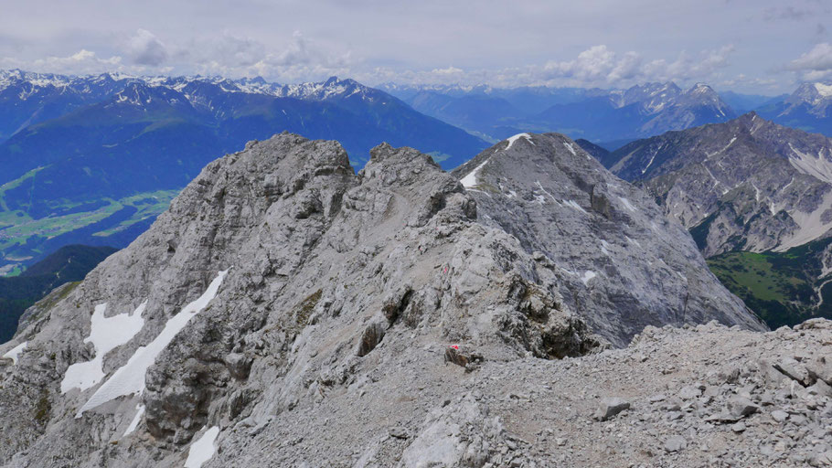 Von der Hohen Warte könnte man hinunter zum Gamswartsattel und von dort am Normalweg retour Richtung Rauschbrunnen gehen. Für mich geht's aber weiter über die sehenswerte Gratgirlande zum Kleinen Solstein.
