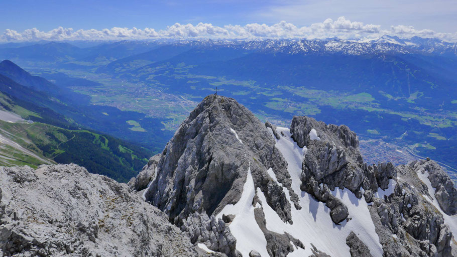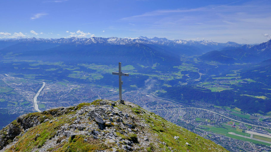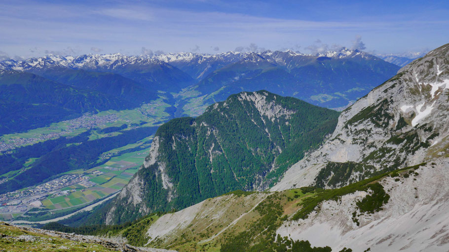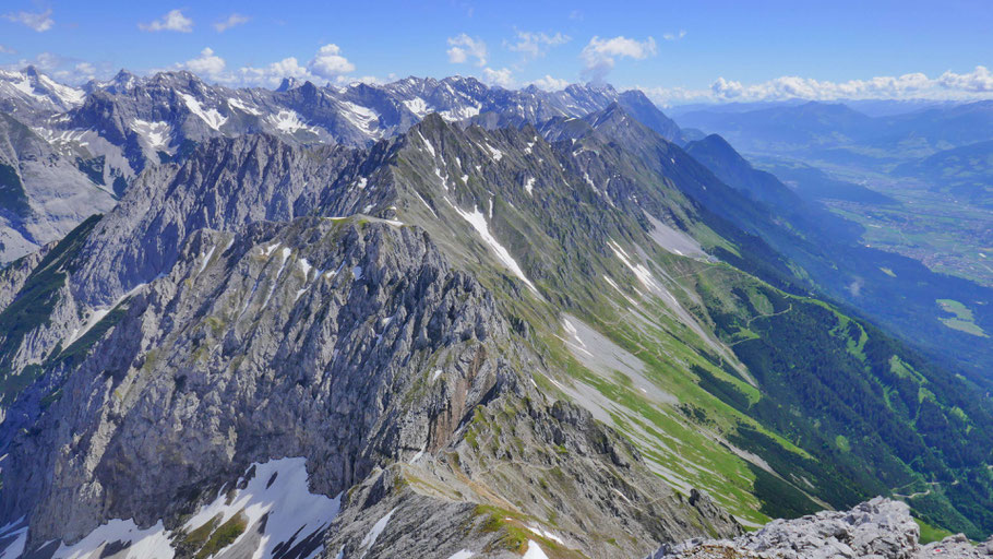 Gigantischer Blick auf den östlichen Teil der Inntalkette. Links im Hintergrund die spannenden Ziele in der mittleren Gleirsch-Halltalkette und rund um das Halltal. Nein, das Karwendel kann einem niemals zu klein werden :)!