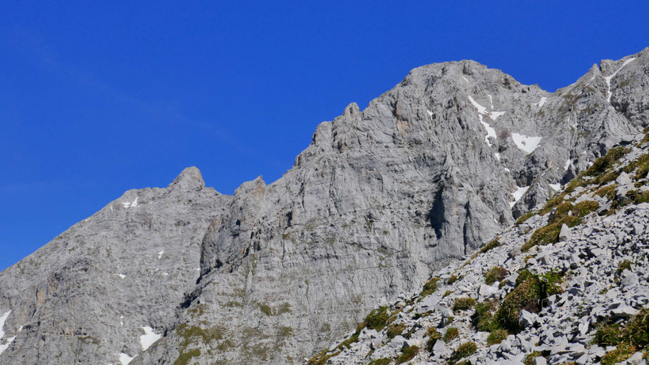 Die Südabbrüche vom Kl. Solstein und Hoher Warte. Dort oben werden ich und ein paar andere herumturnen.