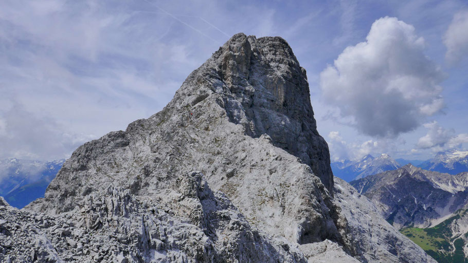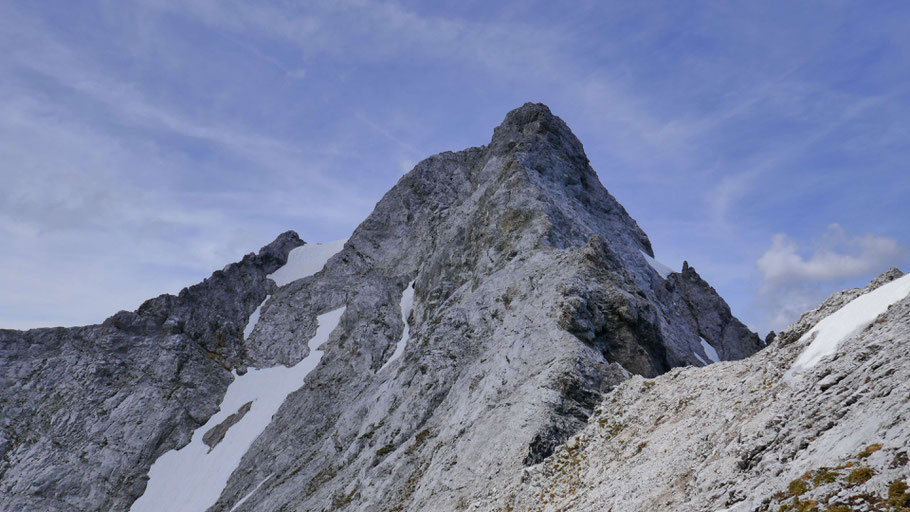 Rückblick auf den Brandjoch-Südgrat, bis hierher mit kurzen Pausen 3:30h und fast 1.900 Höhenmeter - heute jeder Meter ein Genuß!