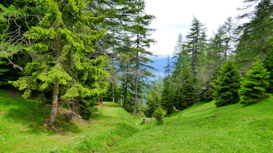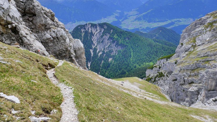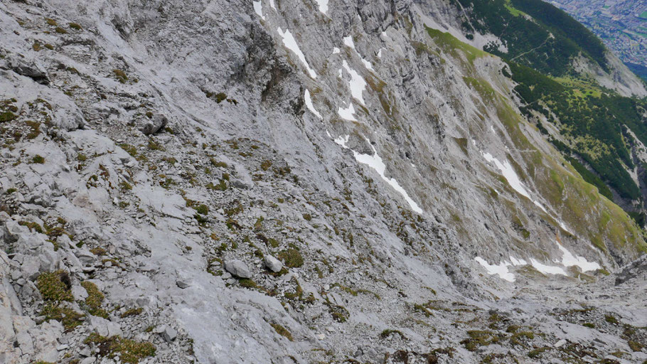 Wer will, könnte auch steil über die Höttinger Flecken zum Normalweg von der Hohen Warte absteigen.