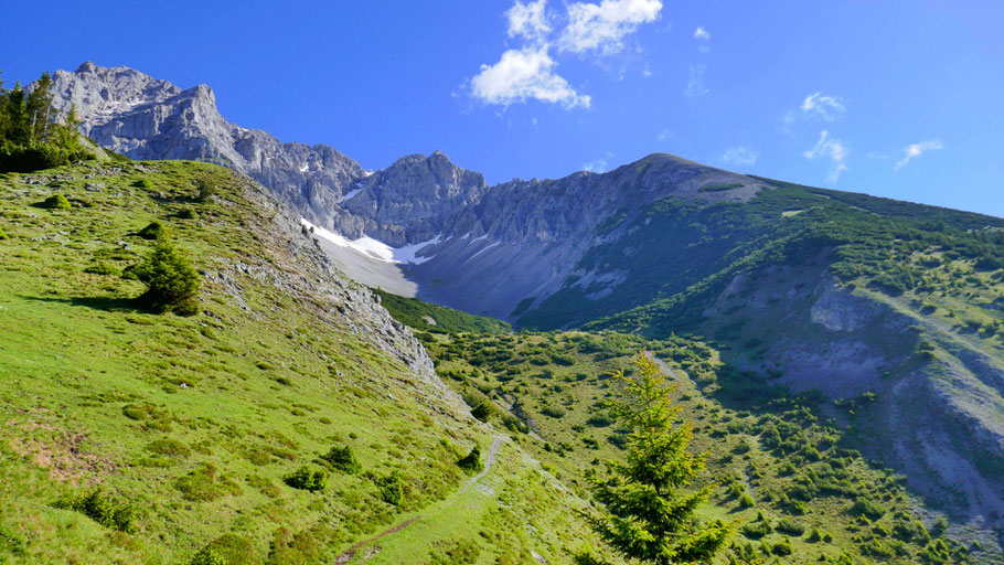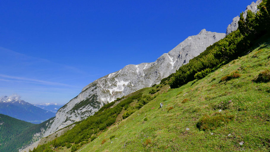 Im Westen die Südflanke des Kl. Solstein, wo ich später absteigen werde.