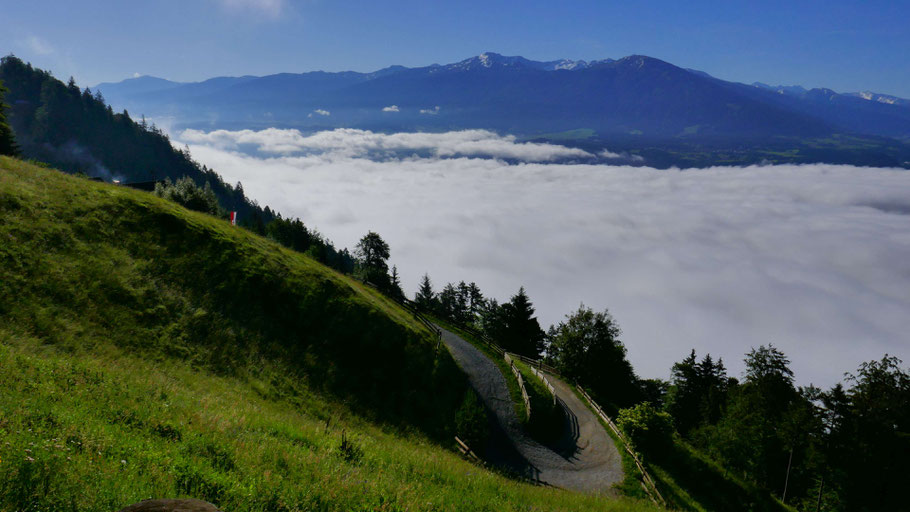 Nach ca. 100 Höhenmetern lichten sich die Nebelschwaden.