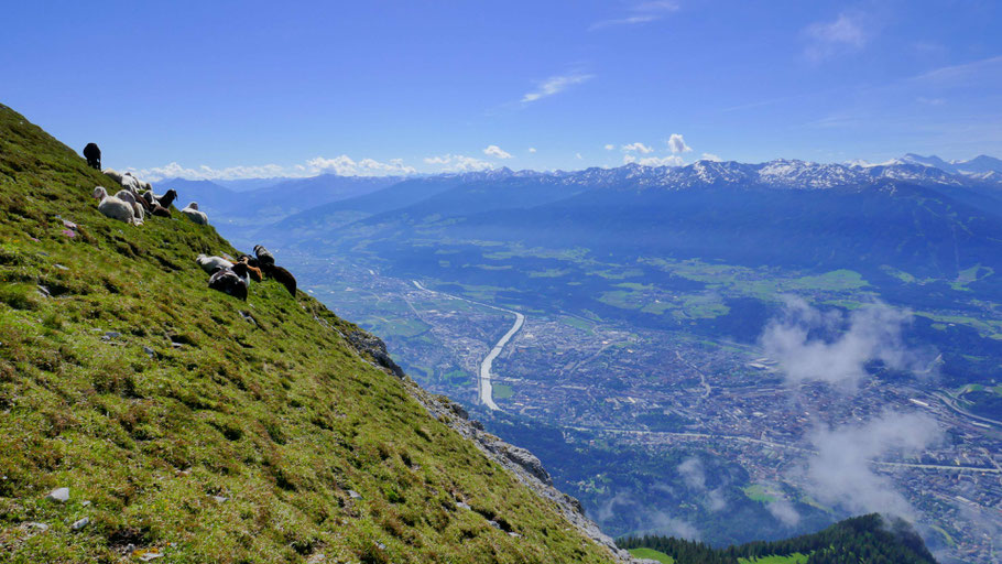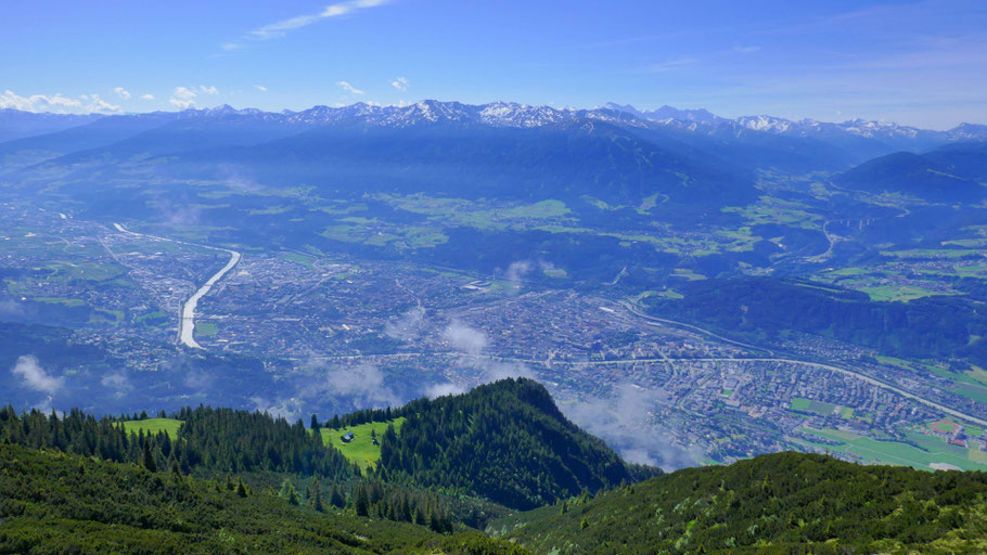 Herrliches Innsbruck, im Vordergrund Achselkopf und Achselbodenhütte (1.645m).