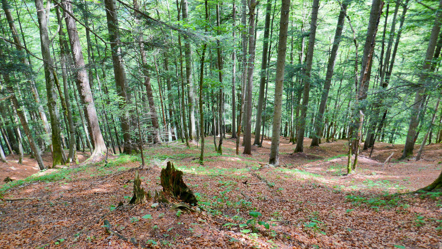 An einer Stelle könnte man links abbiegen und zurück Richtung Rauschbrunnen marschieren, ich zweige aber rechts ab zum Schleifwandsteig.