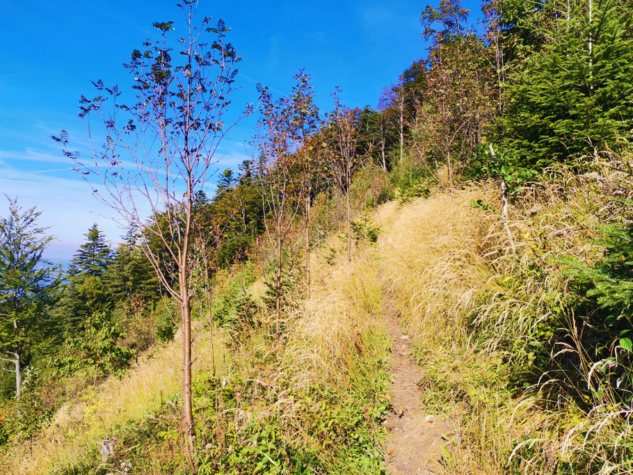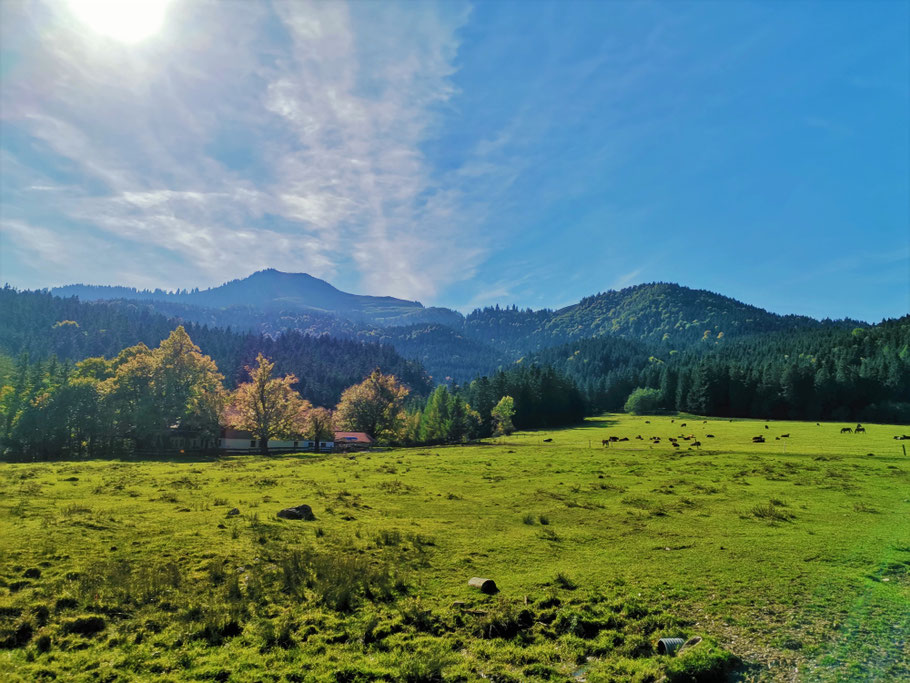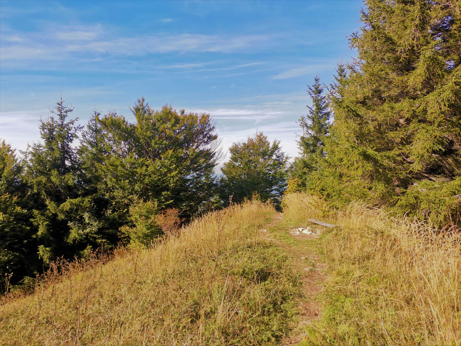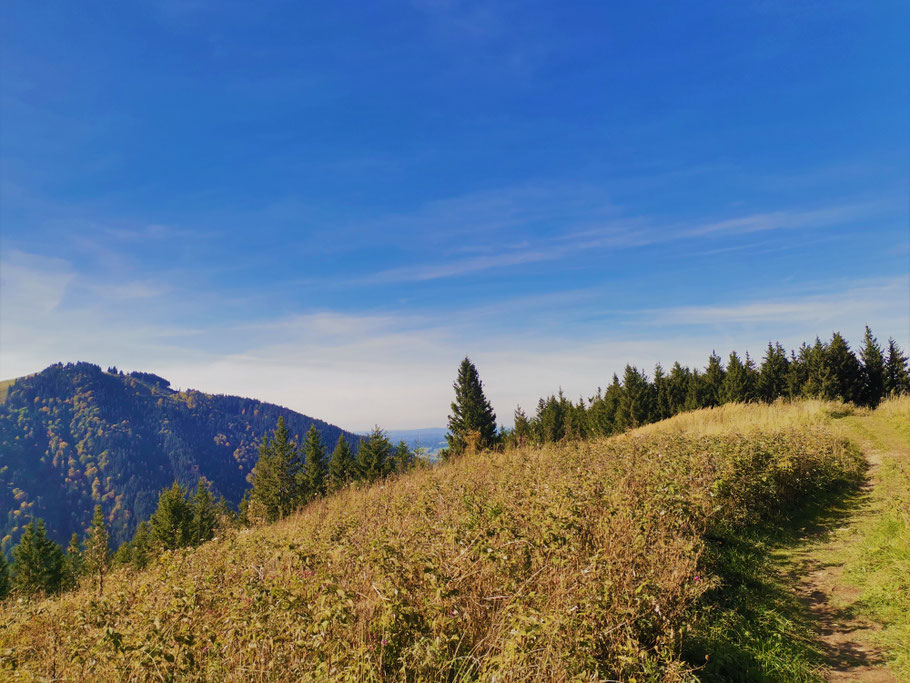 Und auf 1100 Metern tauche ich dann am Gipfel wie aus dem Nichts auf den goldenen Wiesen dieses Herbst-Tages