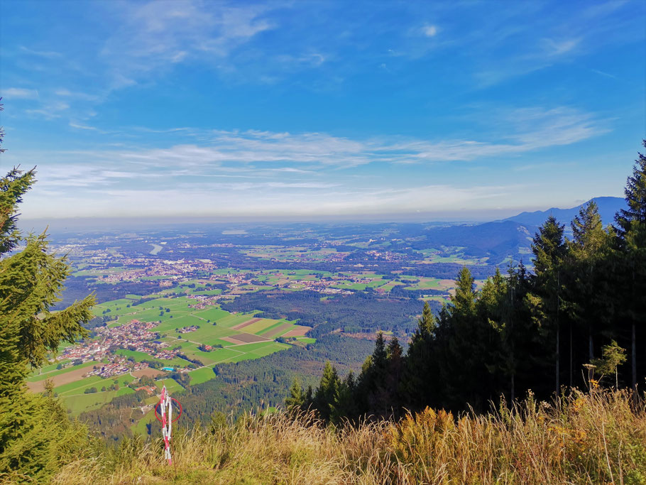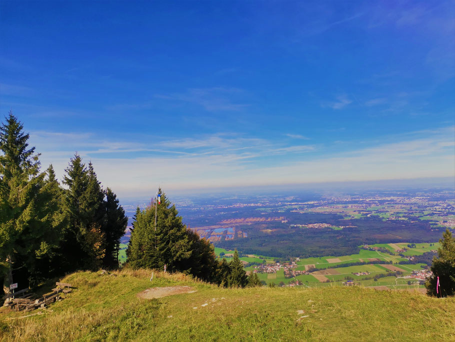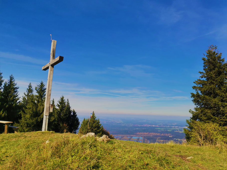 Der Gipfel des Sulzberg (1119 Meter) mit Blick auf die Ebenen Südbayerns.