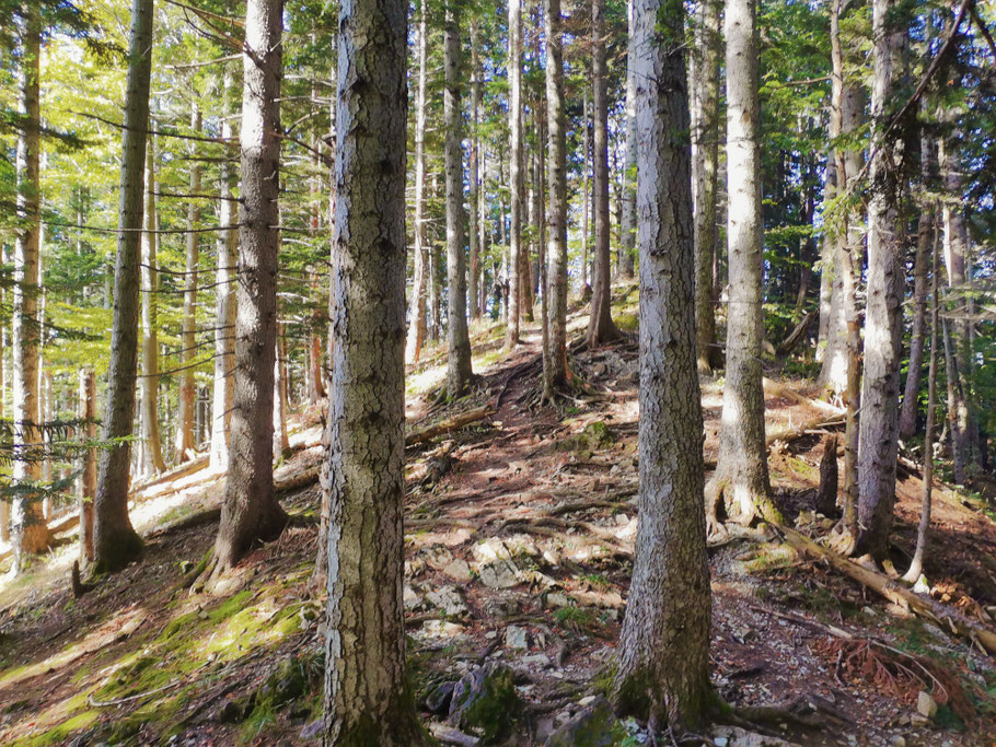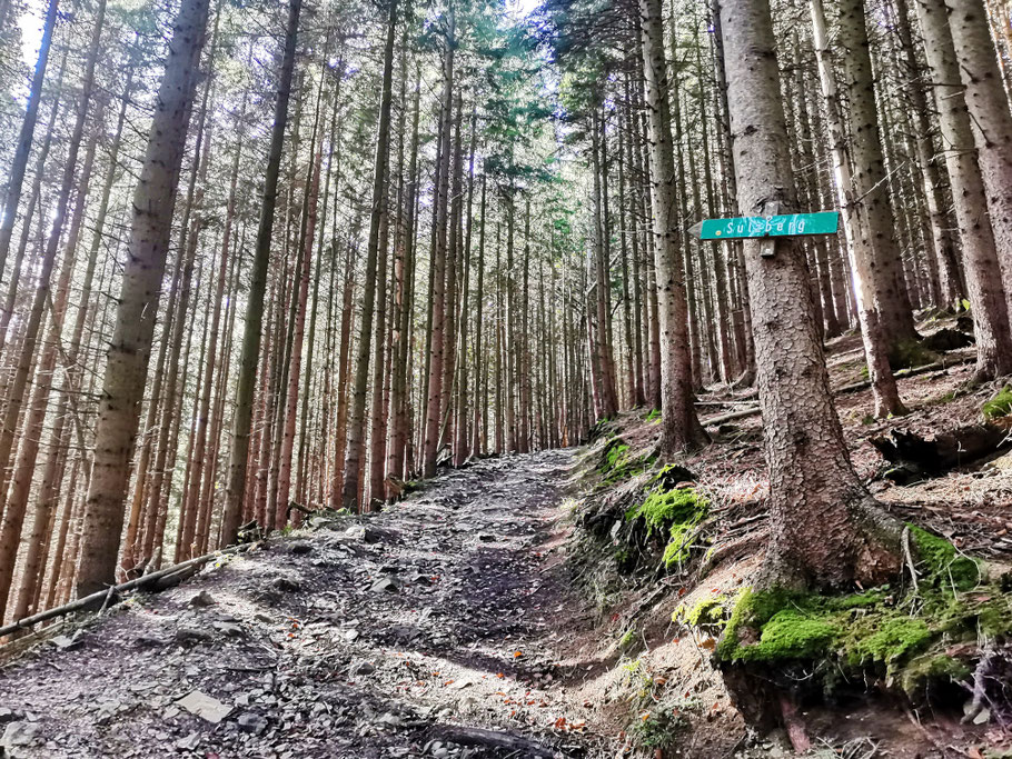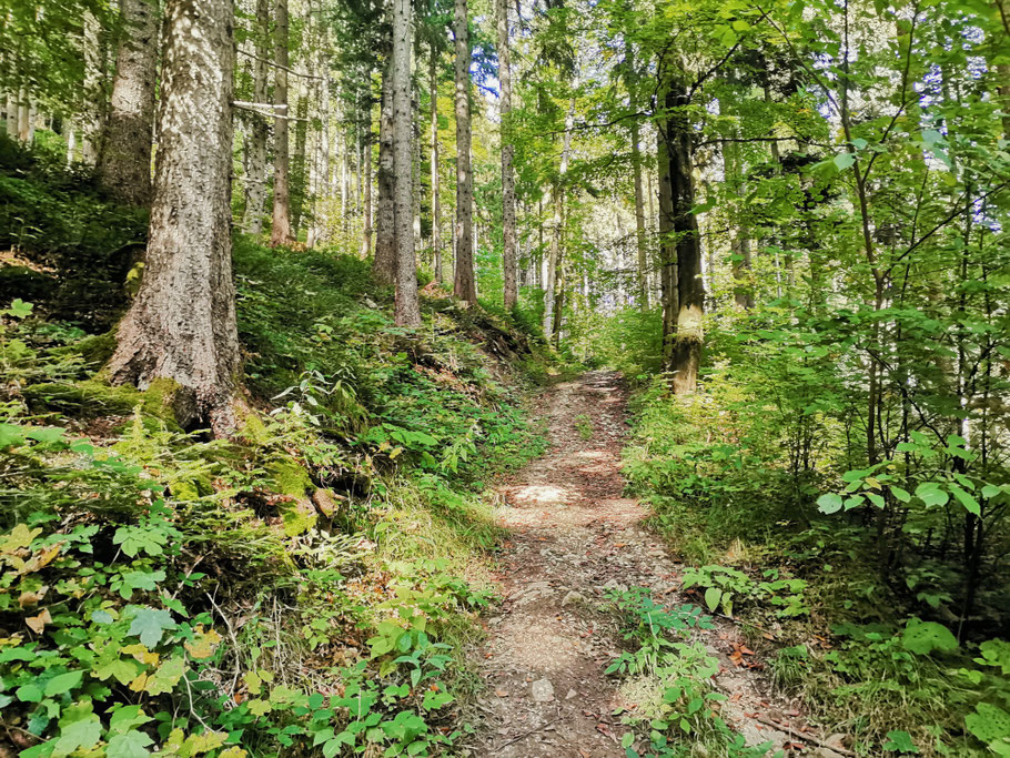 Gleich nach dem Parkplatz zweige ich am Schild Sulzberg in den schönen Wald ab.