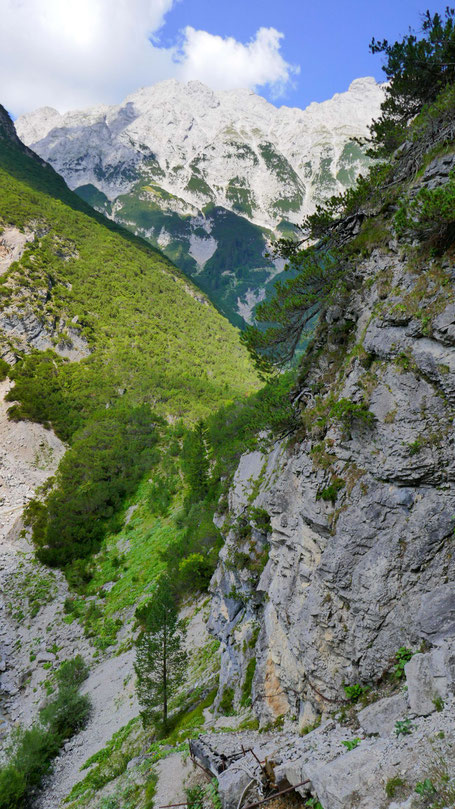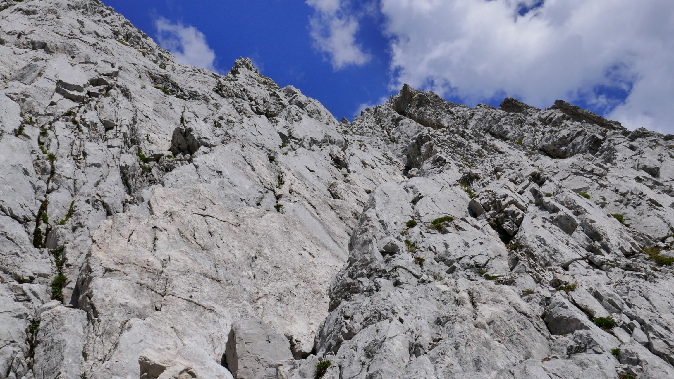Kurz mühsam den Schotter rauf, dann umsatteln auf die klettertauglichen Bergschuhe und hinein in den schönen Fels.