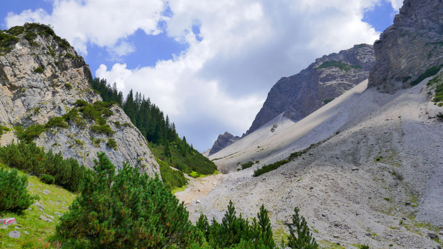 Mächtige Schotterreisen unterhalb des Schafkopfs, dem westlichen Eckpfeiler des Rauchbergs.