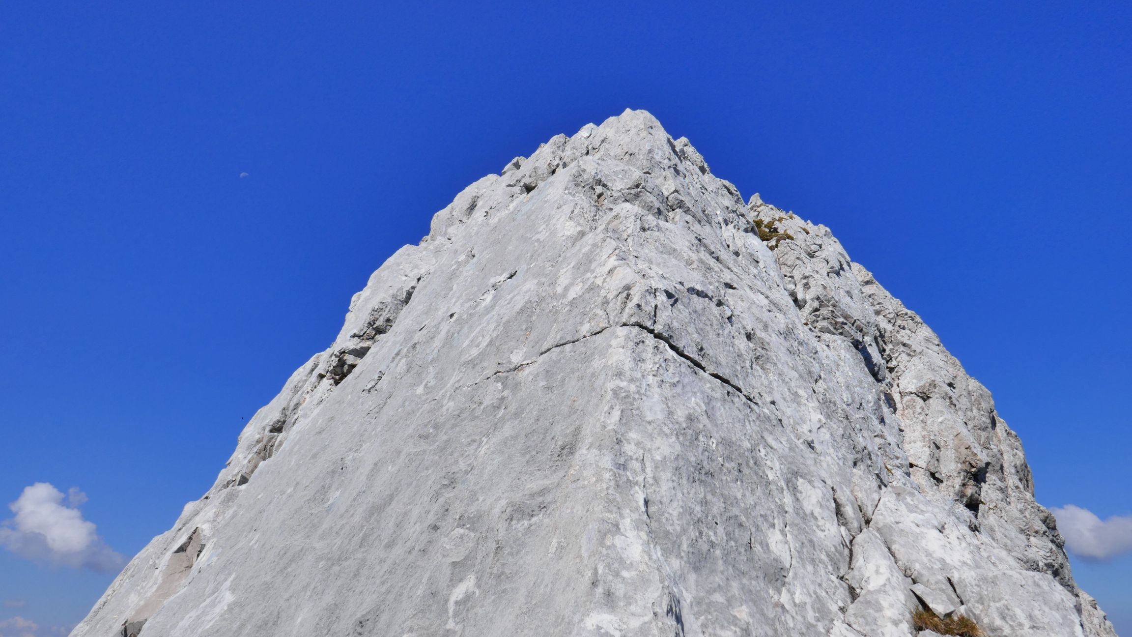 Blauer Himmel, weißer Fels, nur ich und der Berg - das wiegt alles oft Entbehrungsreiche am Bergsteigen auf.