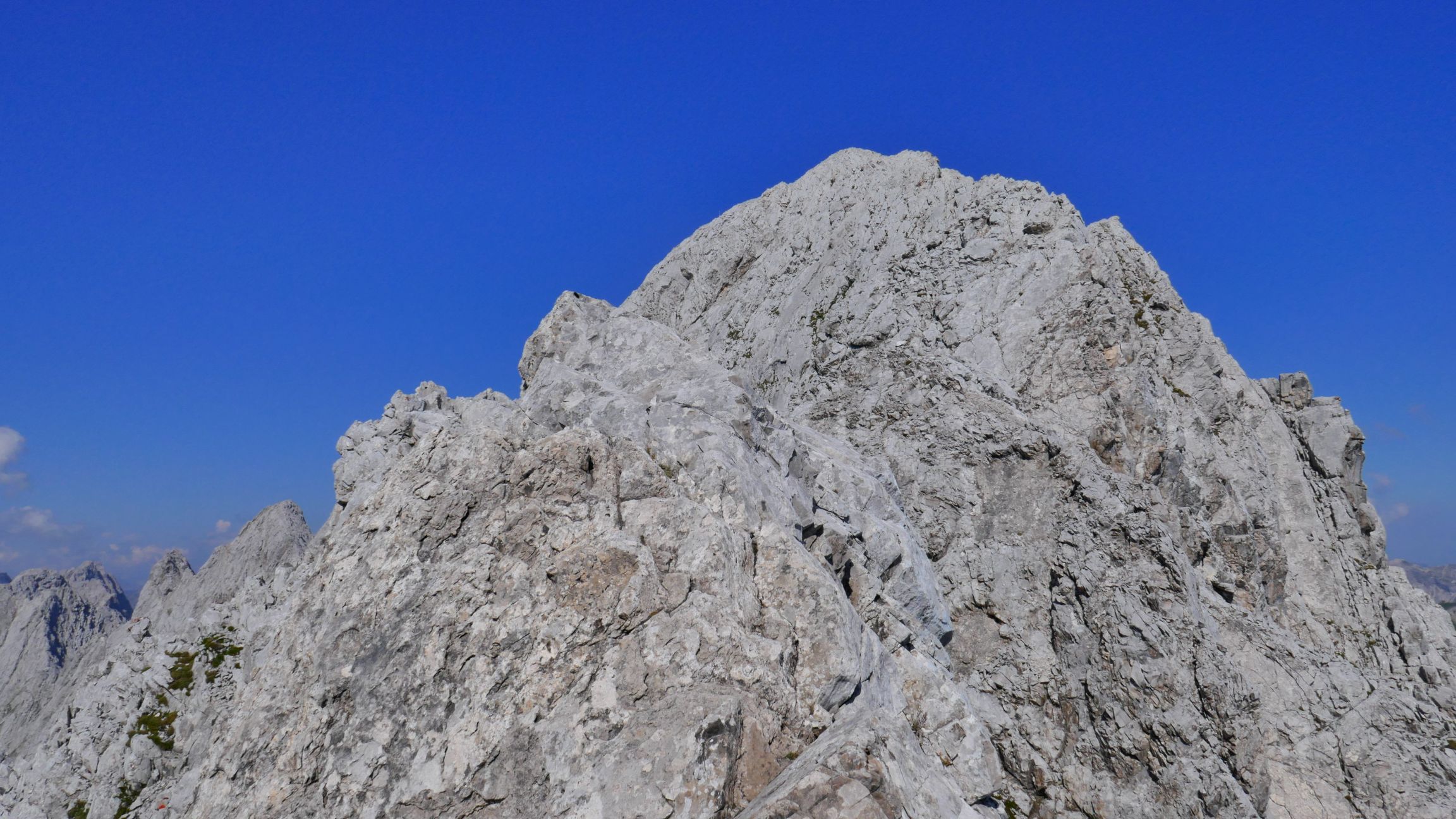 Eine knappe Dreiviertelstunde ist von der Scharte einzuplanen, der Ostgipfel ist es in jedem Fall wert. Die Belohnung ist ein toller Blick auf den Hauptgipfel und dessen Nordseite.