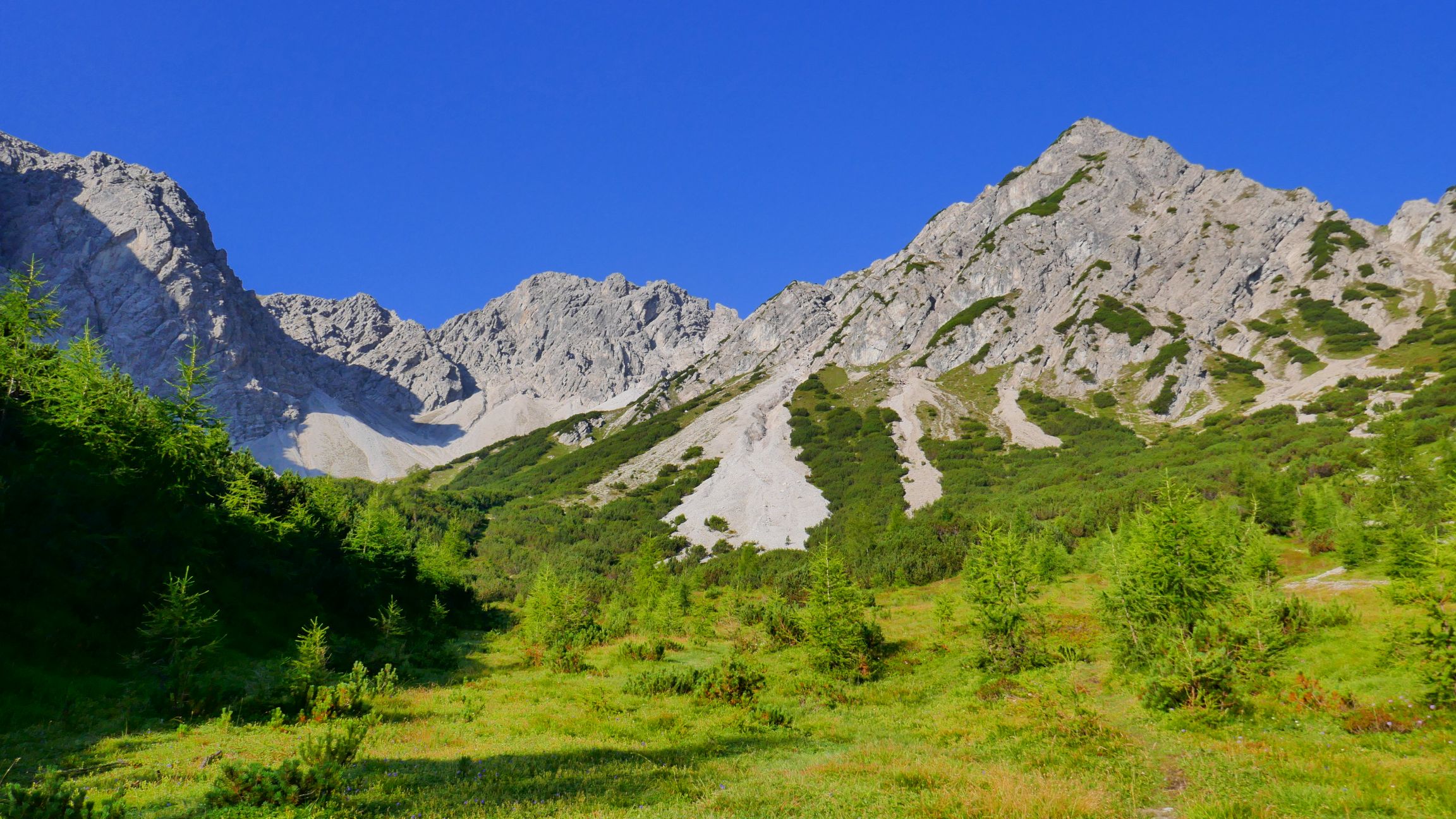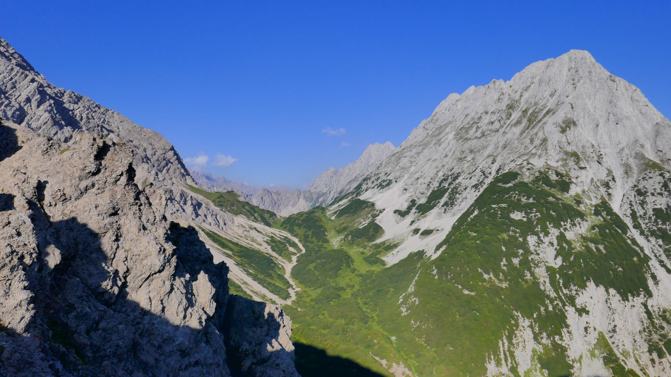 Vom Reisenschuhjoch (2.054m) - für mich 1:45h ab Obtarrenz - hat man erstmal freien Blick auf die mächtige Heiterwand. Manchmal spürt man, dass ein Moment ein richtiges Highlight ist - das war so ein Moment.