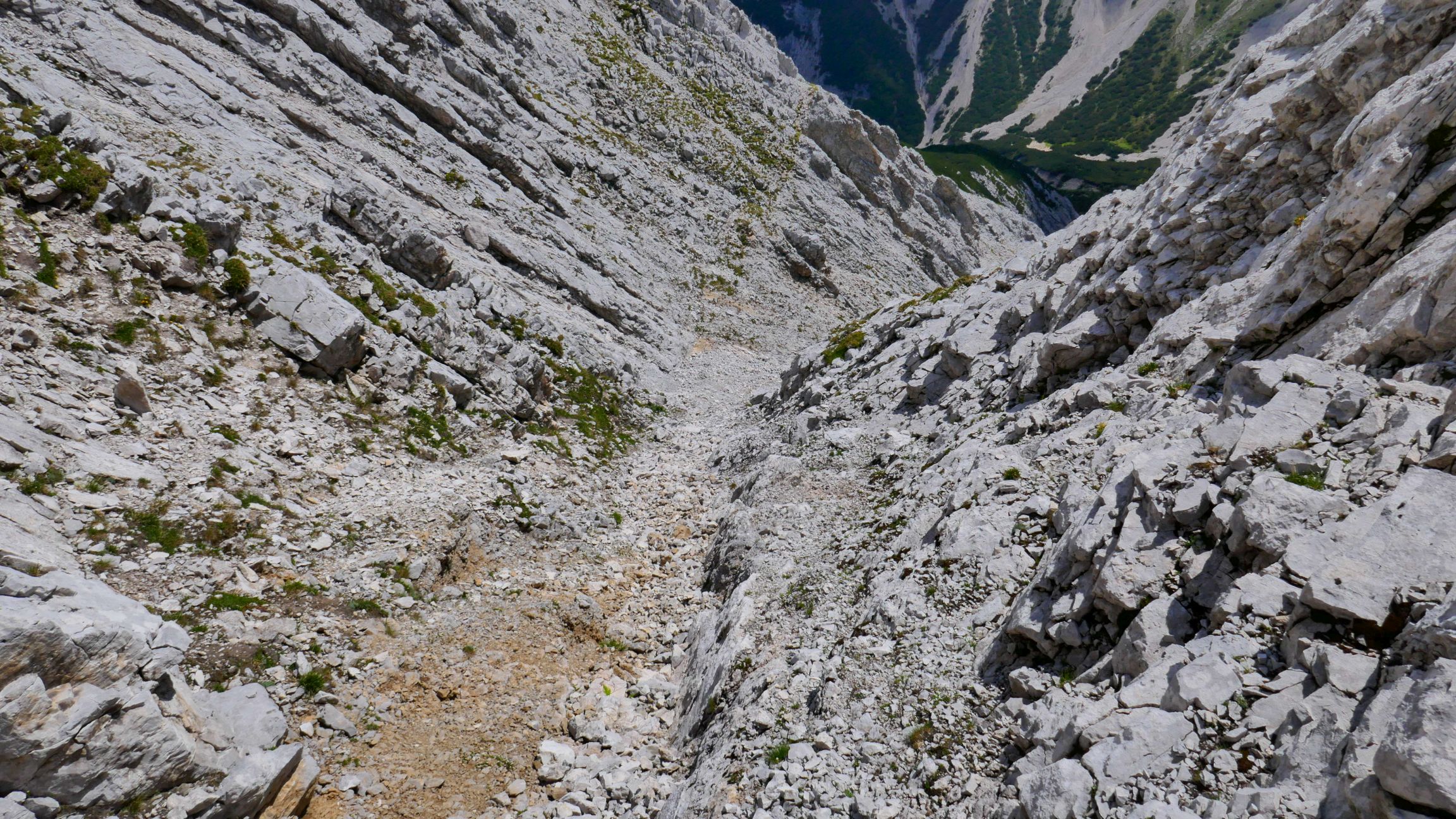 Nach der ersten Rinne schrofig weiter (bis max. T5).