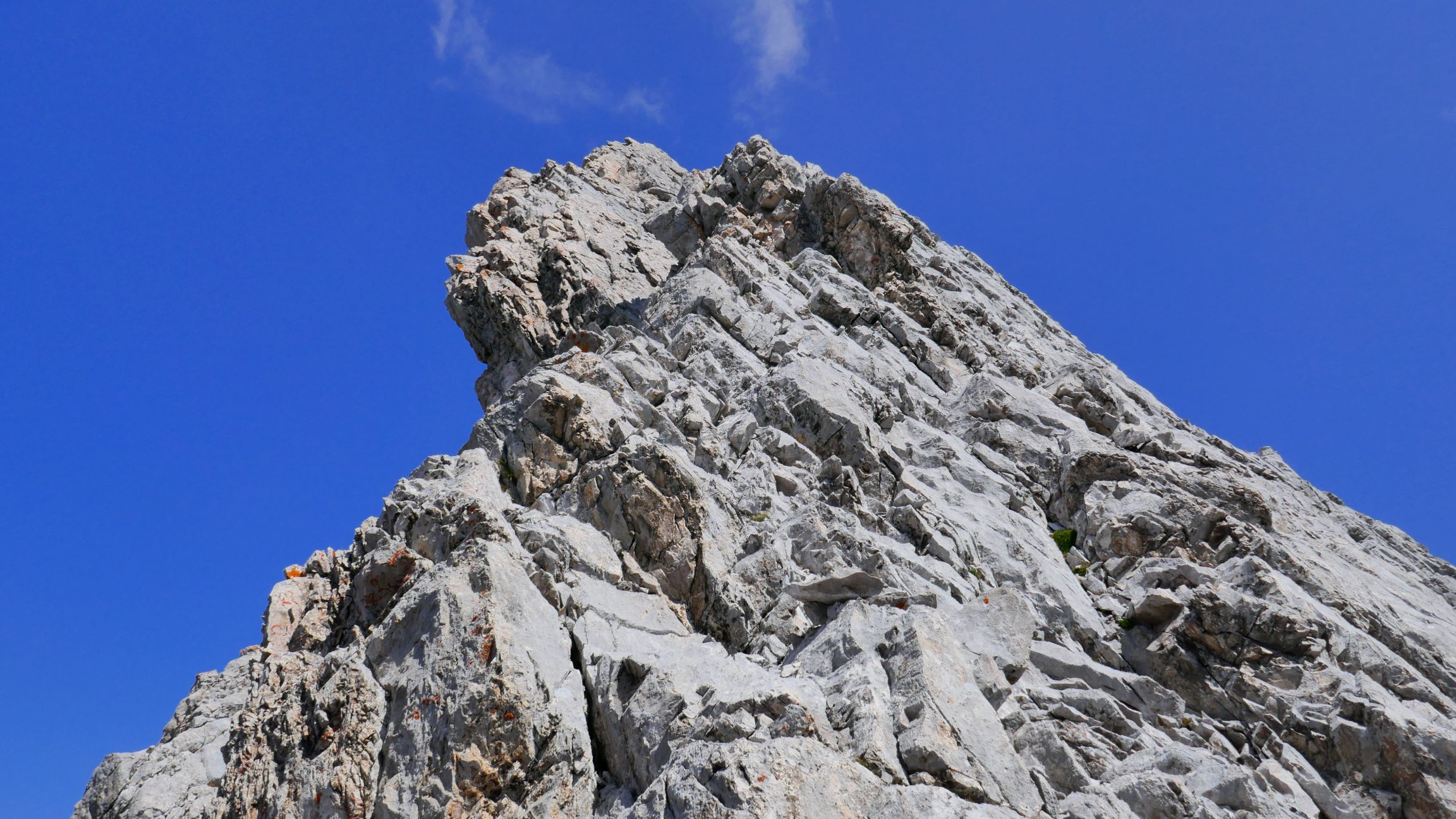 Bester Fels wartet am Ostgrat zum Hauptgipfel, dessen Aufbau bereits rechts hinten zu sehen ist.