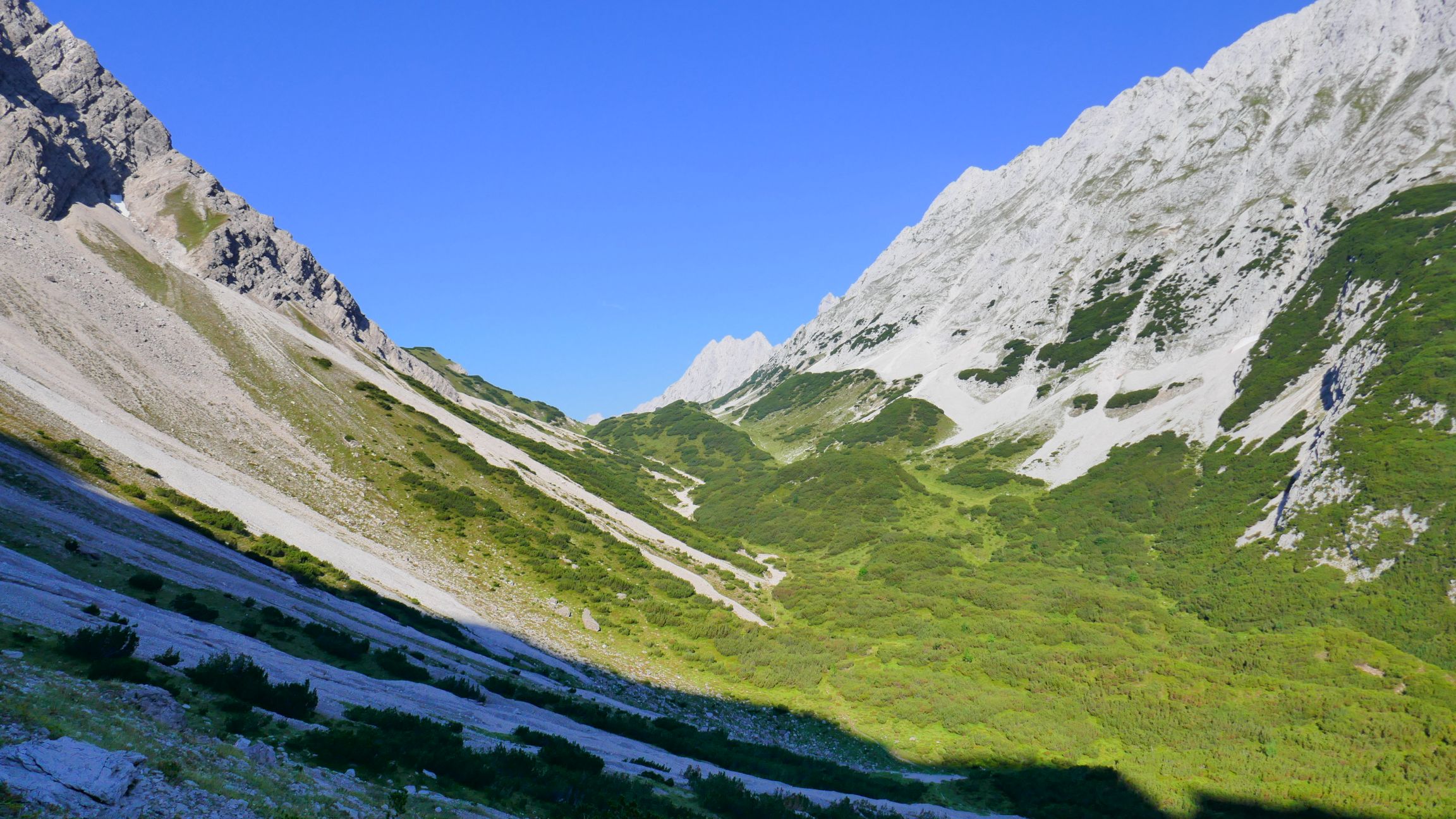 Das nächste Teilstück ist der Abstieg in die Senke und der Gegenanstieg hinüber zum Grubigjöchl.
