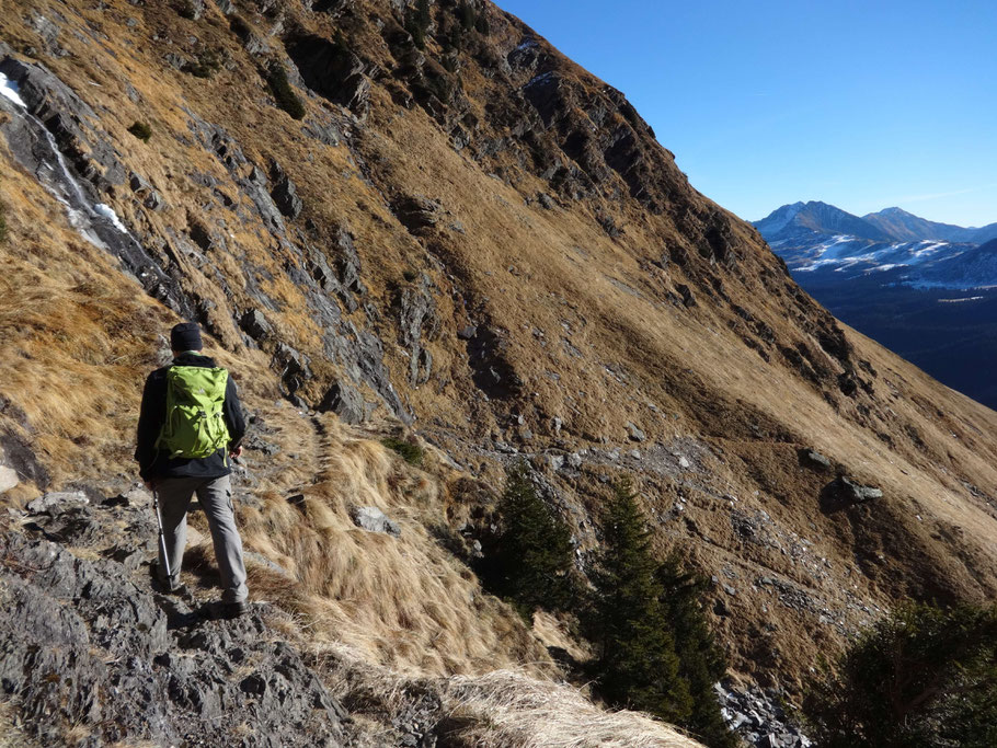 Ab und an weicht der Weg auch in die Flanke aus - die Hohe Ferse zeigt sich hier bereits leicht mit Schnee