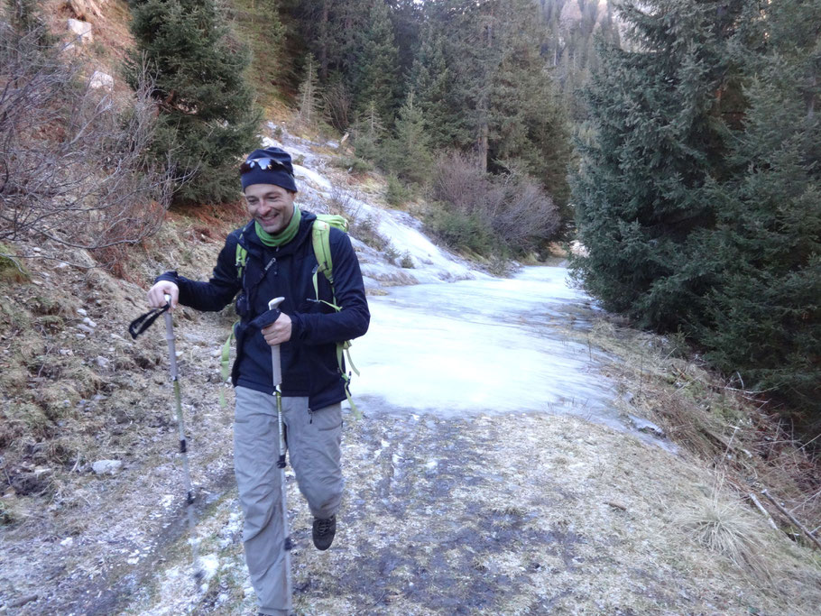 Ein (eisiges) Hindernis war dann noch - anschließend marschieren wir durch das Tal einige Meter flach zurück zum Ausgangspunkt. Weihnachten kann kommen - die Wandersaison fand hier ihren grandiosen Schlusspunkt.