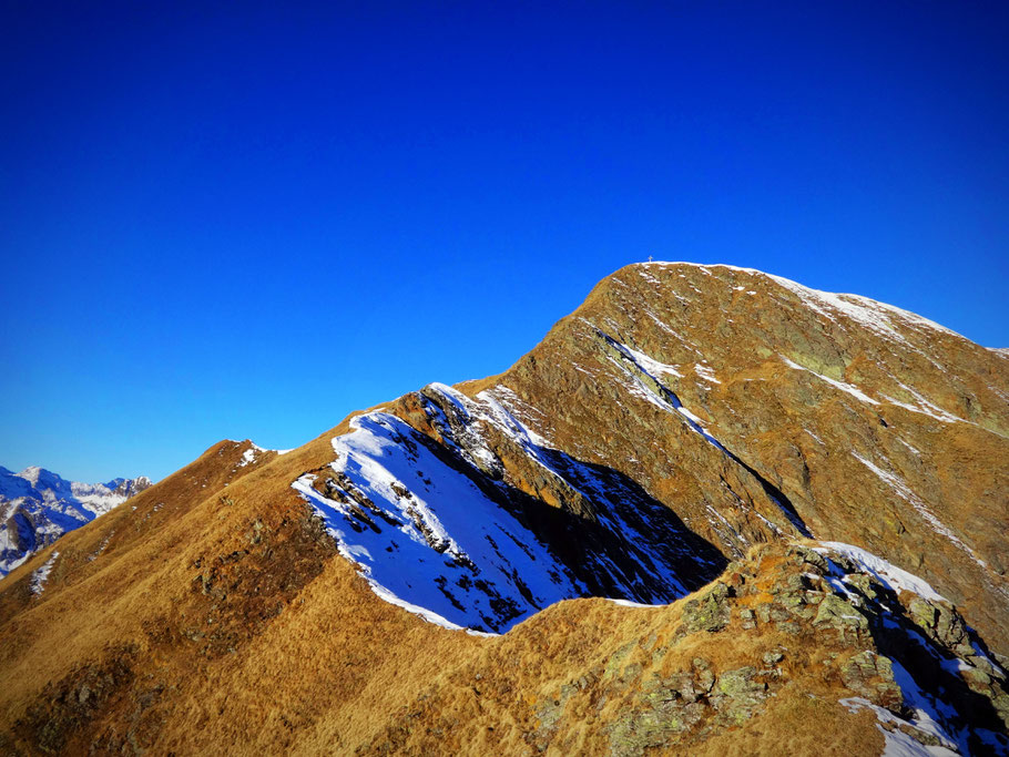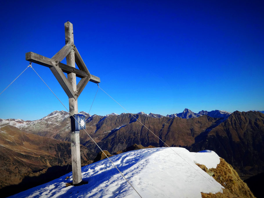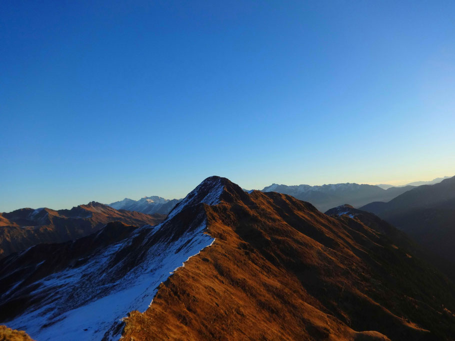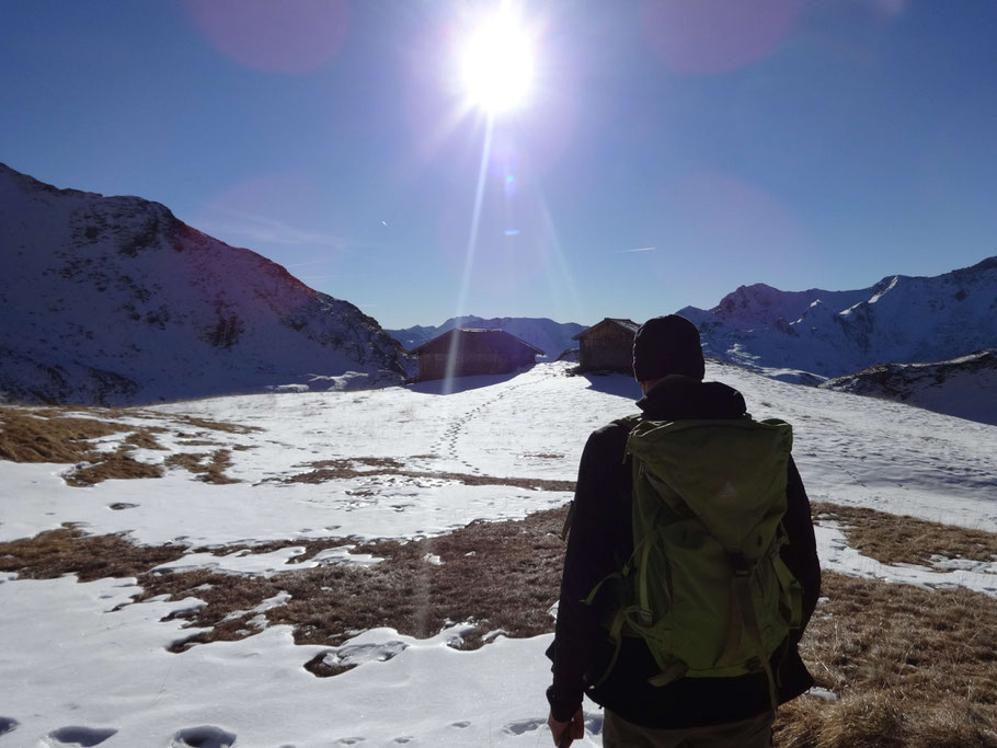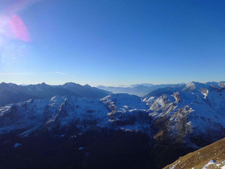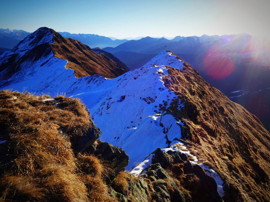 Hikalife-Geschichte ein. Der höchste Punkt am Kamm zwischen Ridnauntal und Ratschingstal besticht mit seiner Aussicht, den braunen Dezember-Wiesen und dem nordseitigen Schnee. Am Aufstieg geht es