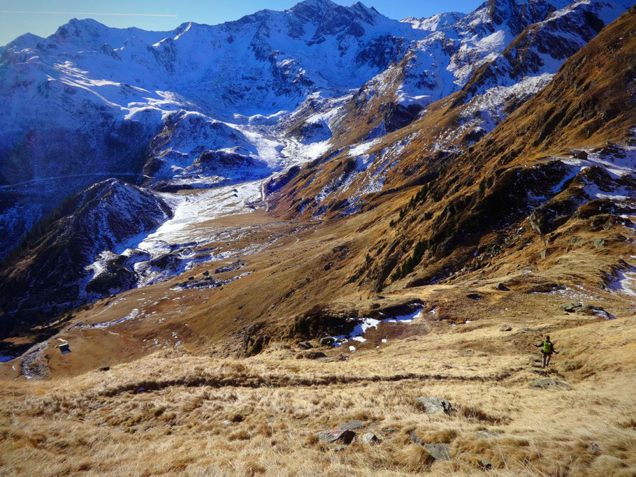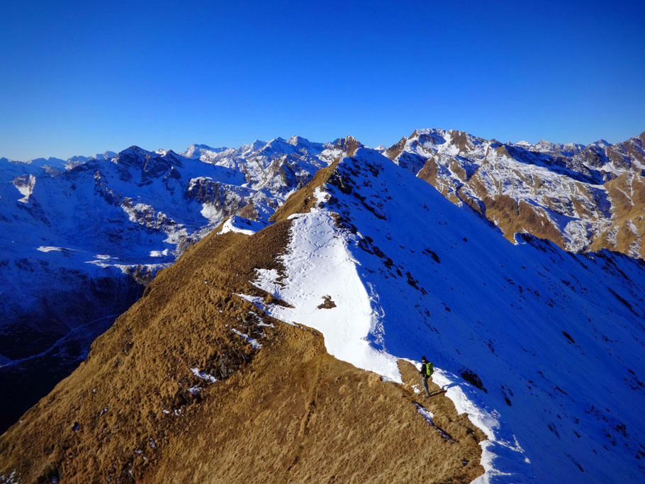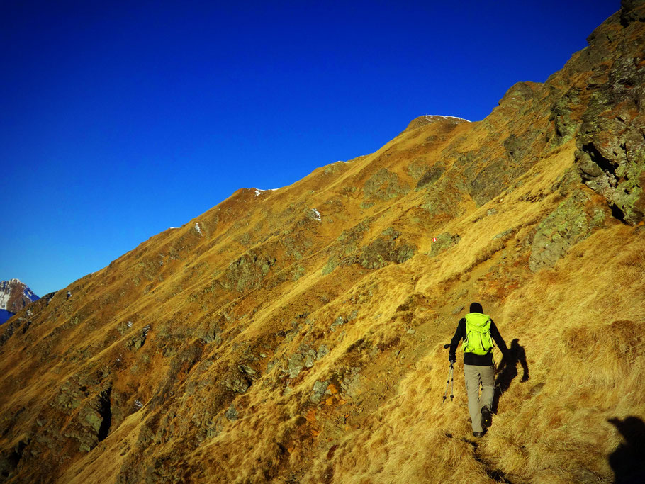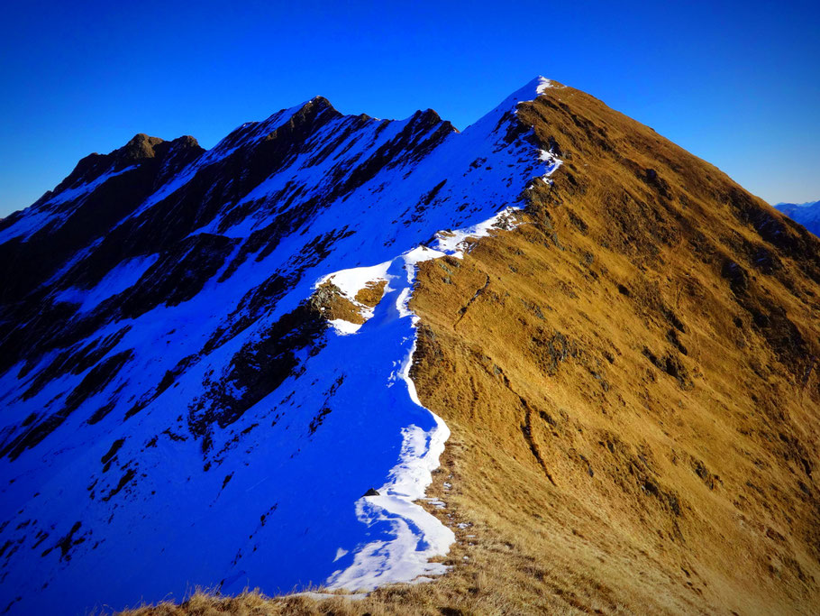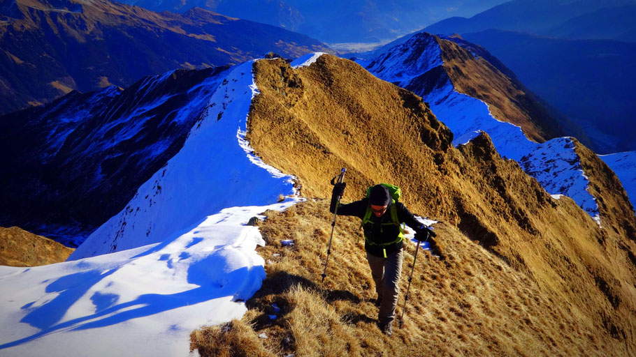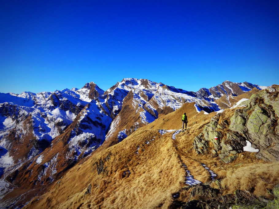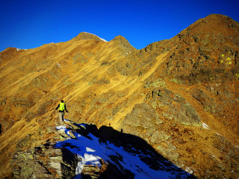 Hikalife-Geschichte ein. Der höchste Punkt am Kamm zwischen Ridnauntal und Ratschingstal besticht mit seiner Aussicht, den braunen Dezember-Wiesen und dem nordseitigen Schnee. Am Aufstieg geht es