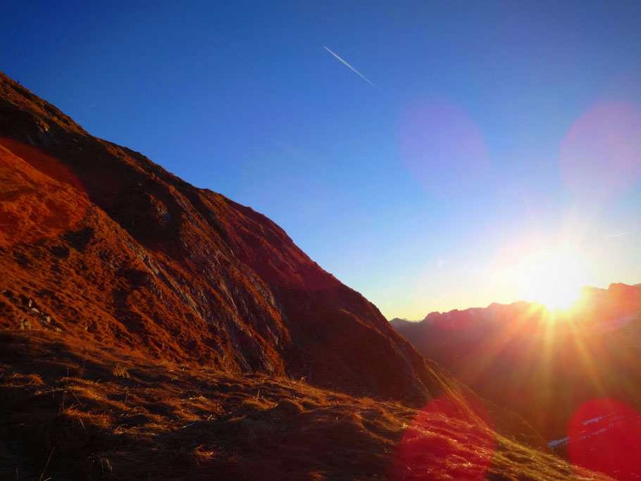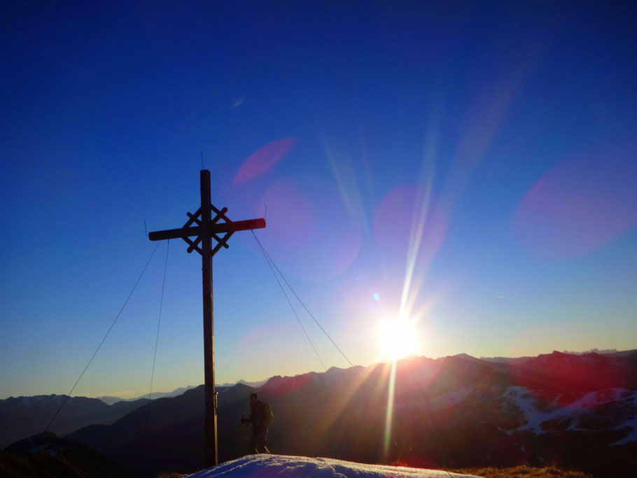 Fast pünktlich zum Sonnenaufgang am Ratschinger Kreuz (2296 Meter).