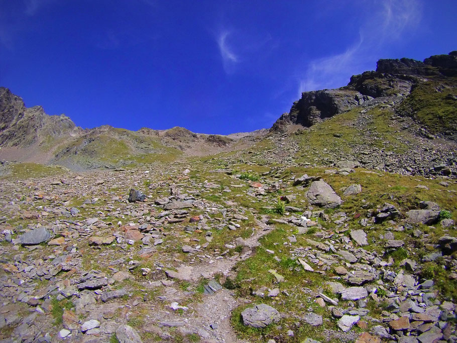 Auf relativ einfachen Wegen (T2) geht's wieder hinab zur Pforzheimer Hütte.