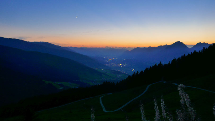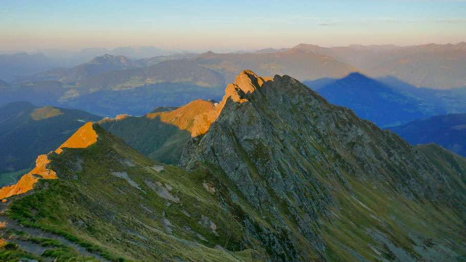 Im letzten Tageslicht steige ich über die Naunzalmen ab. Das war ein echtes Gratschmankerl in den Tuxer Alpen am aussichtsreichen Kellerjoch - werde ich mit Sicherheit wiederholen!