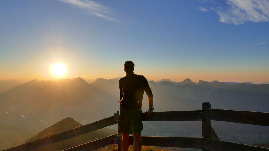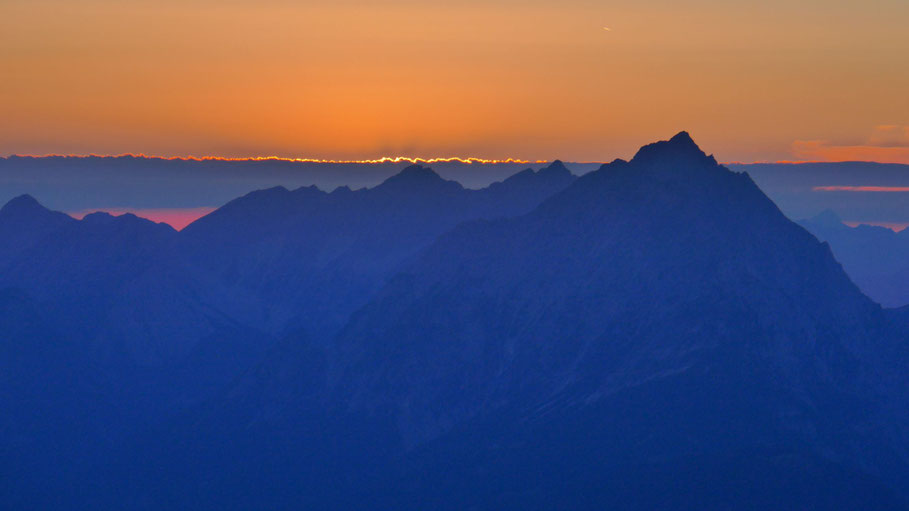 Sonnenuntergang überm Karwendel am Hochnissl (rechts), mittig die kürzlich besuchten Kaiserkopf & Hochglück.
