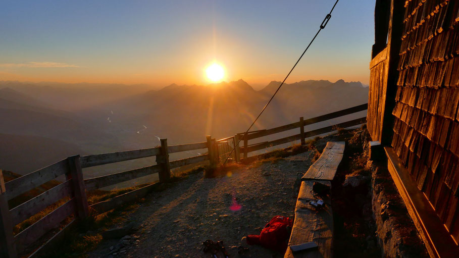 Abendtour auf das aussichtsreiche Kellerjoch in den Tuxer Voralpen. Der Sonnenuntergang bei der Kellerjochhütte bildete den entspannten Abschluss der anspruchsvollen Gratbegehung zwischen Metzen- und Kreuzjoch.