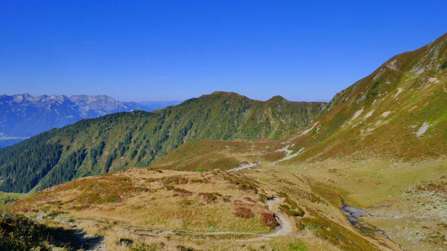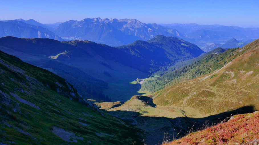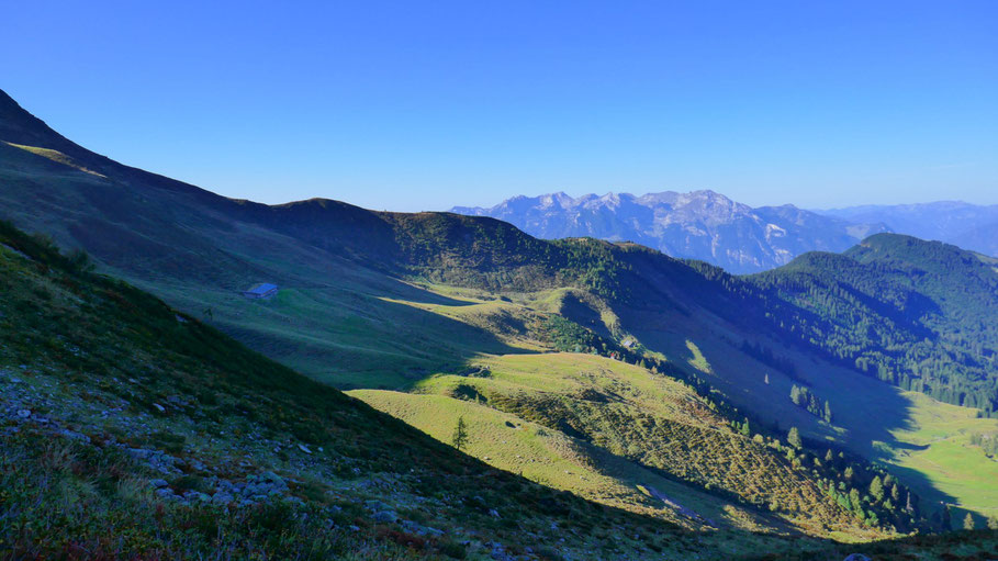 Beim Falschegg, unten Öxltal mit der Kaunzalm.