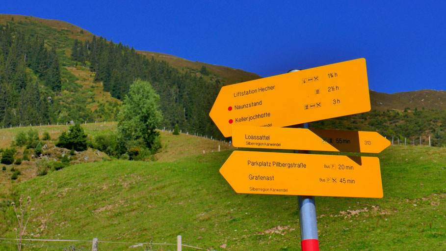 Später Nachmittag, wohin des Weges? Das Kellerjoch ist bestens erschlossen, ich starte meine Runde bei einem kleinen Parkplatz an der Forststraße zum Loassattel (ca. 1.450m) - erstes Zwischenziel ist der Naunzstand oben am Kamm.