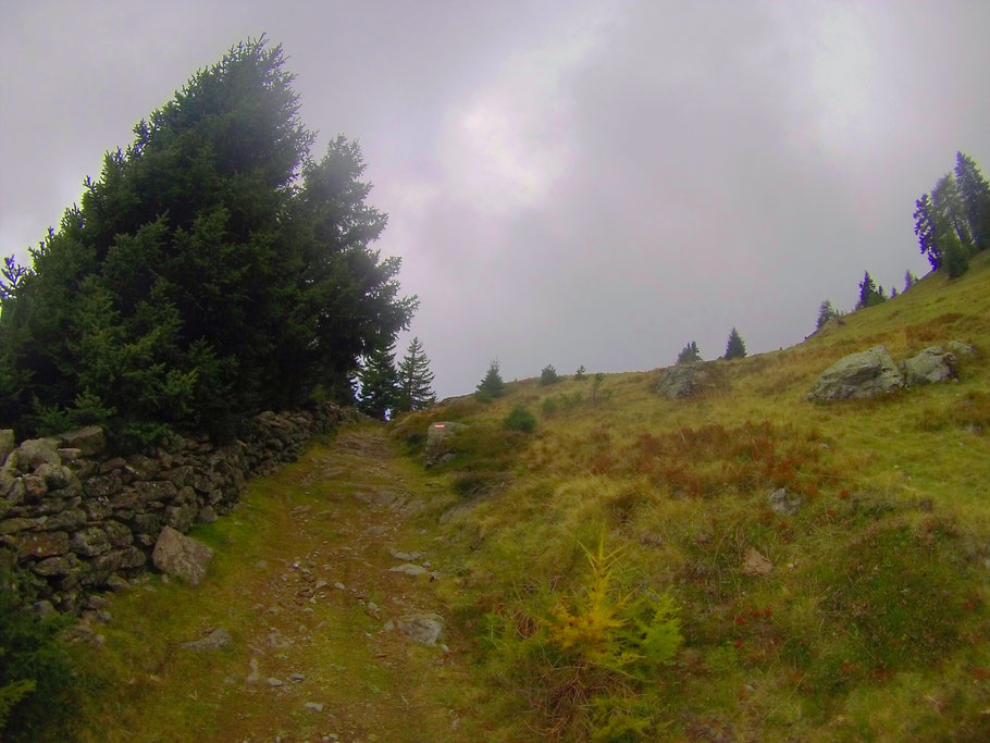 Über Almwiesen unter der dicker werdenden Wolkendecke im Lauftempo weiter.