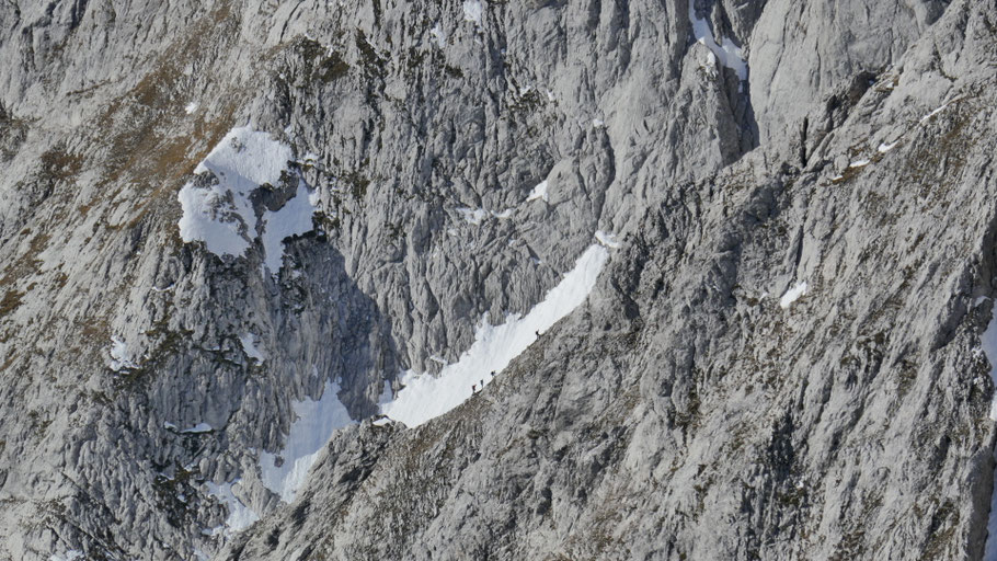 Gruppe von 4 Bergsteigern am Weg zur Östl. Griesspitze, auf Höhe des "Fischs".