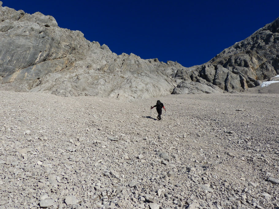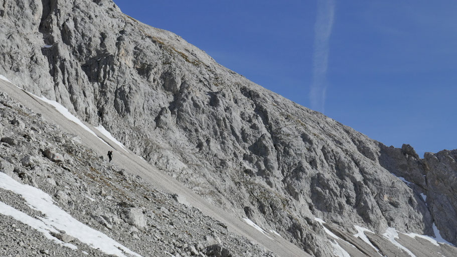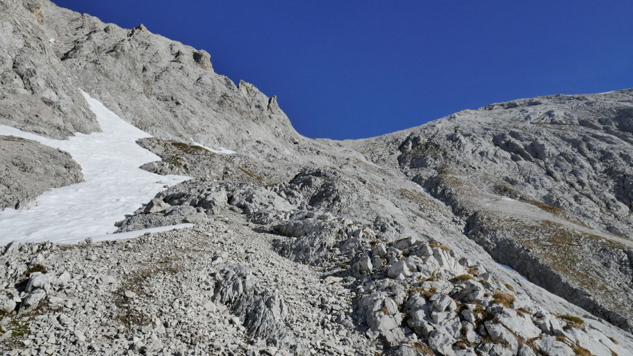 Der Felsriegel rückt näher, ein bisschen Schuttschinden gehört dazu.