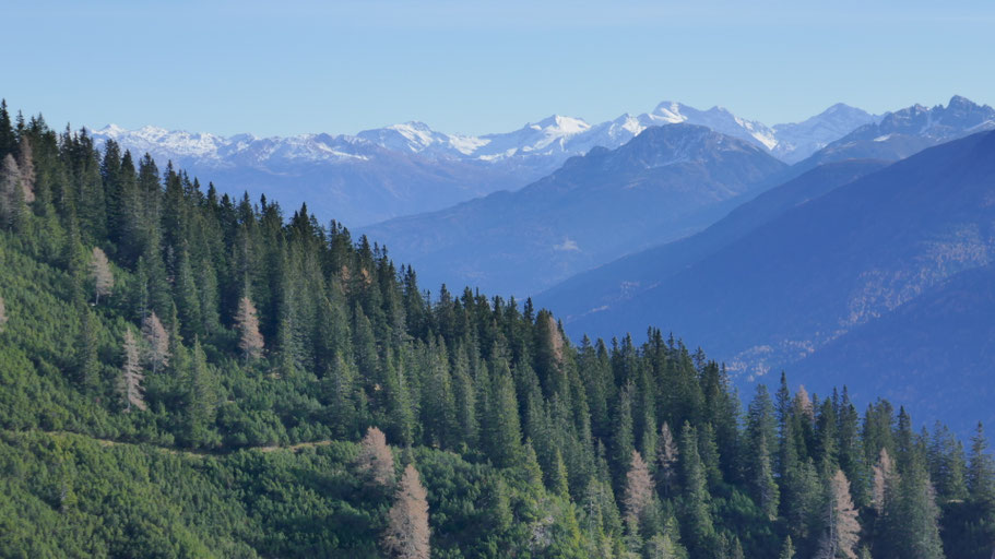Tiefblick zum Henneberg, rechts der neu errichtete, hässliche Wirtschaftsweg.