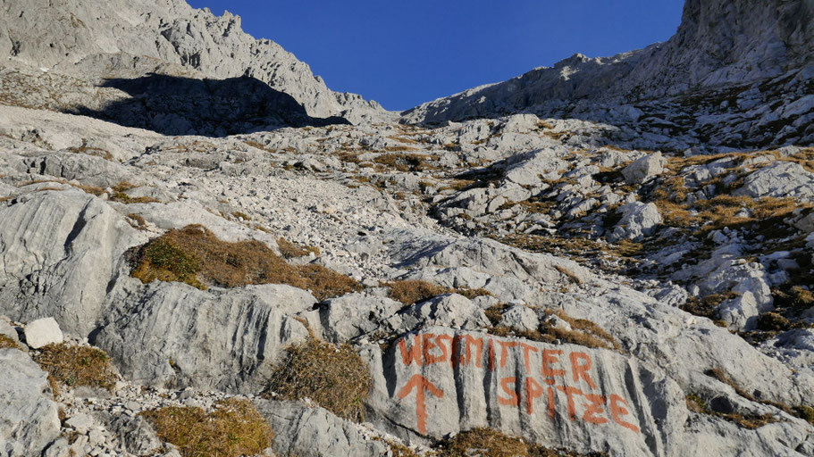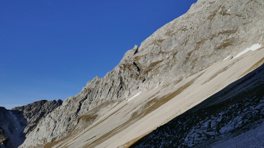 Dann in Nullkommanix runter. Links erspähen wir eine (vermutlich) einfache Zustiegsmöglichkeit zum Westl. Schoßkopf.