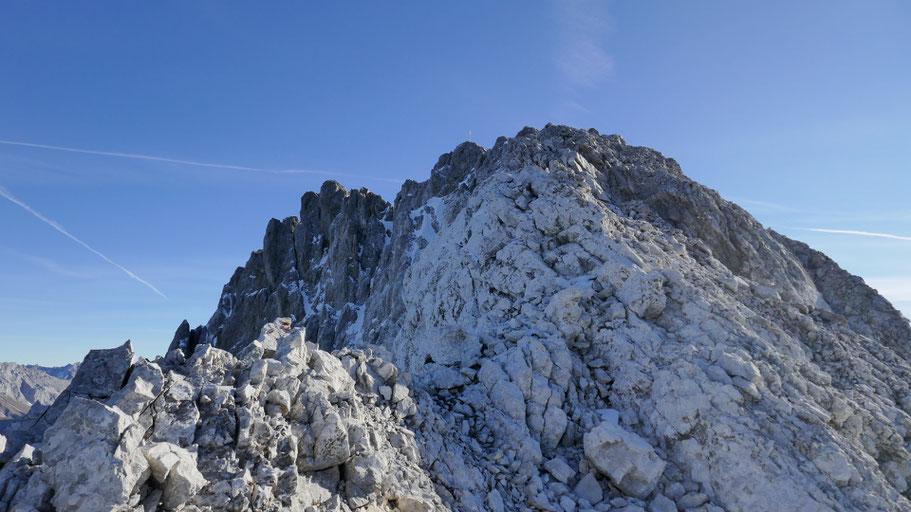 Ab hier ist es recht windig. Der Westgrat zeigt sich zahm.