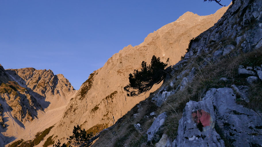 Grandioses Licht, wir folgen dem markierten Pfad.