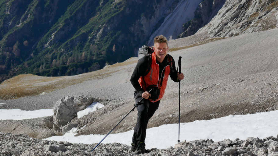 Dankend nutzen wir ein paar Schneefelder zum energiesparenden Aufstieg.
