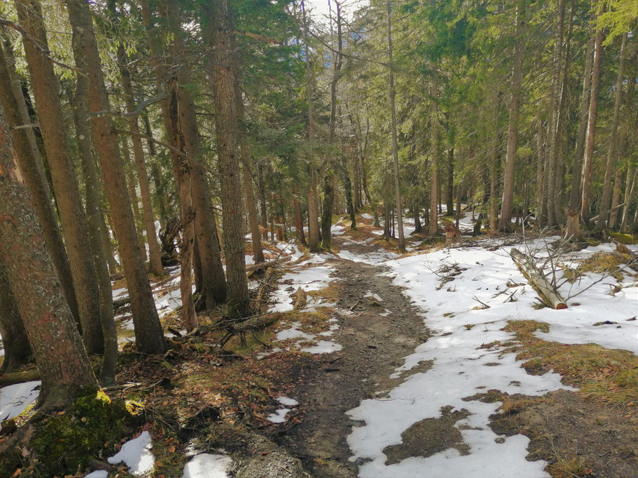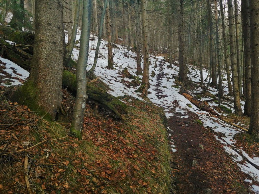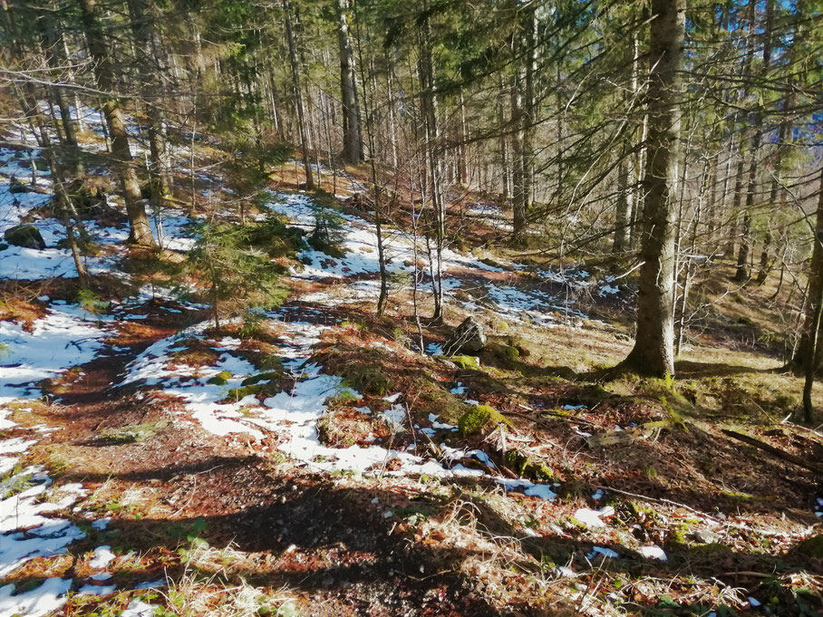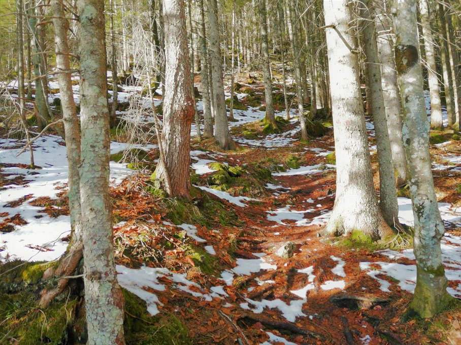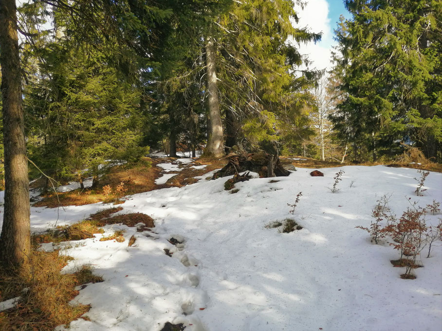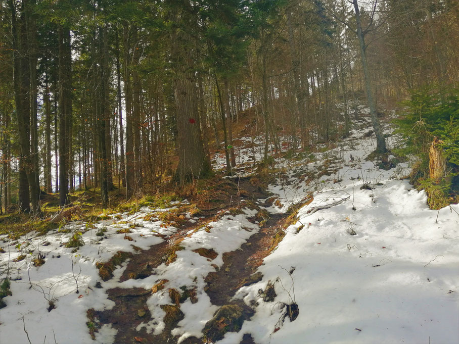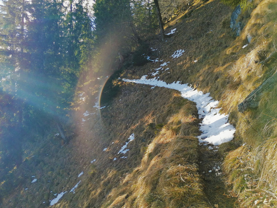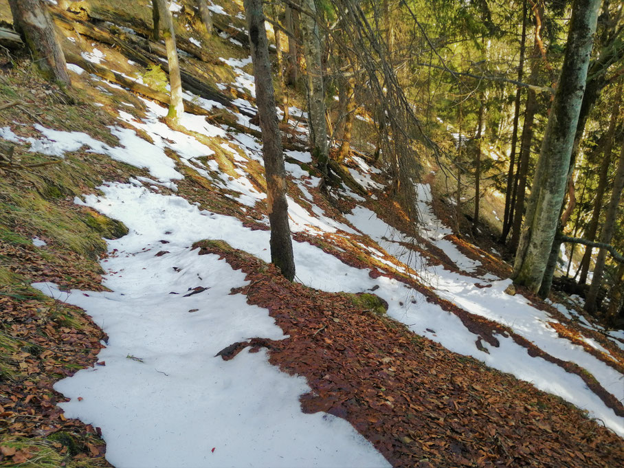 In den flachen Passagen habe ich mit ein wenig Schnee zu kämpfen, ansonsten ist der Winter hier südseitig nicht wirklich präsent.