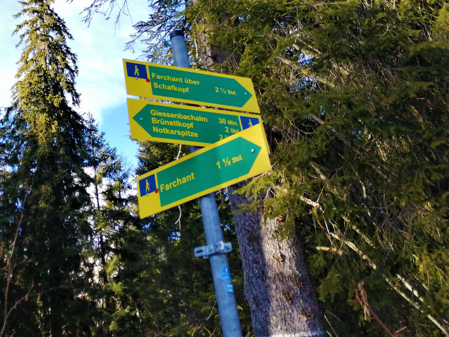 Nach gut 1,5 Kilometern mit ca. 80 Höhenmetern Abstieg wartet mein Abzweigung nach Farchant.
