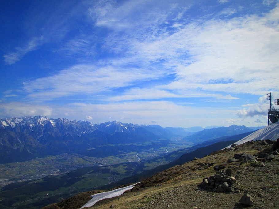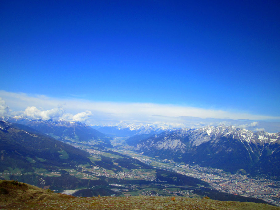 Blick hinab auf Innsbruck und Inntal - das Wetter hält besser als angesagt.